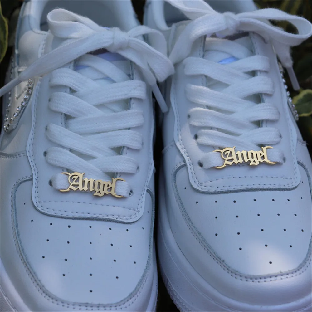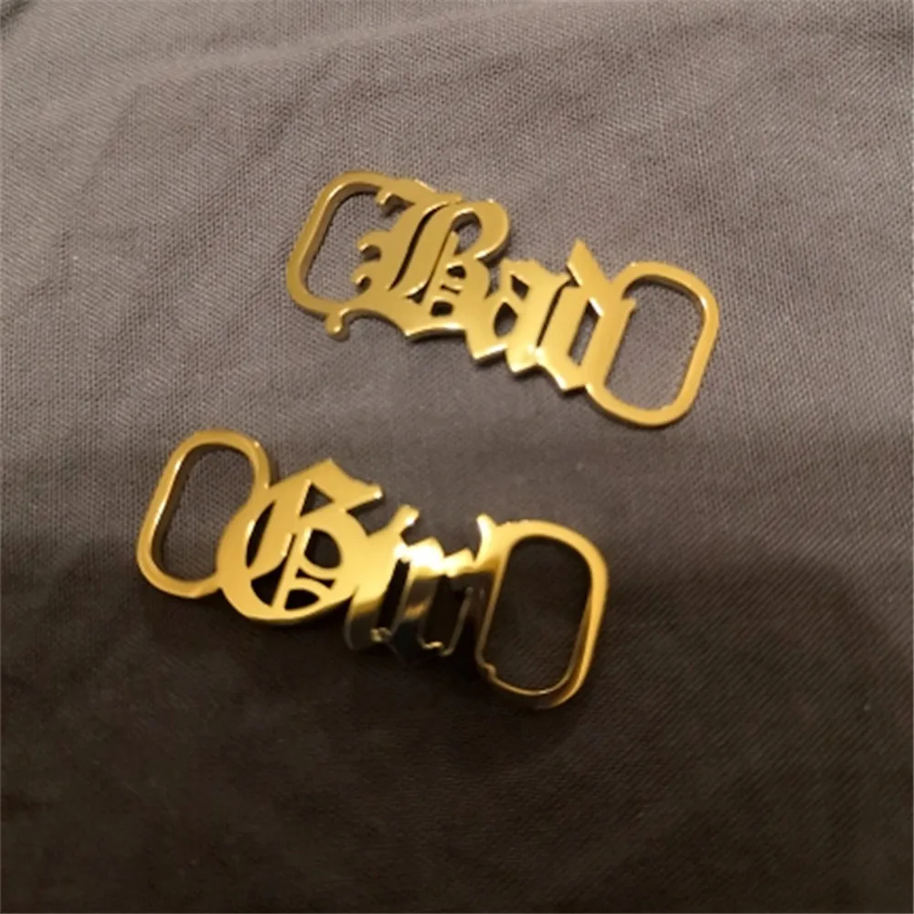 Украшения для обуви из нержавеющей стали, украшения для обуви с буквами ангела плохой девочки, Пряжка для обуви для маленьких девочек, левая и правая кроссовки, бижутерия для женщин