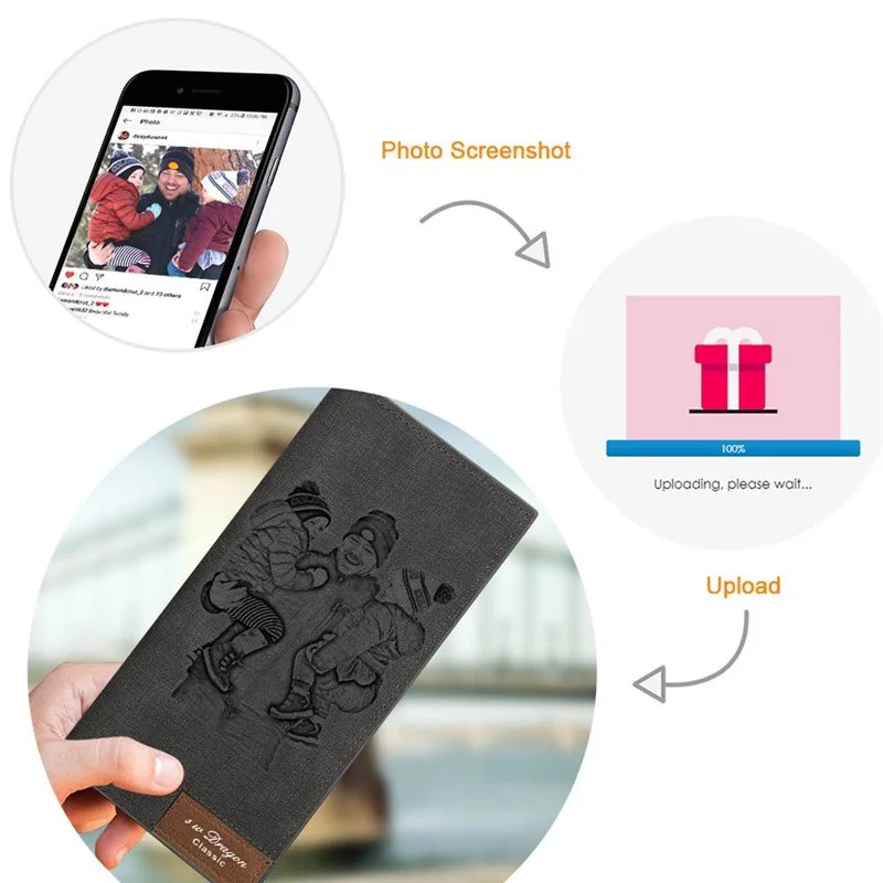 Модный дизайнерский Длинный кошелек для мужчин и женщин, тонкие бумажники двойного сложения, индивидуальная гравировка, фото, подарок на день отца, день рождения, юбилей