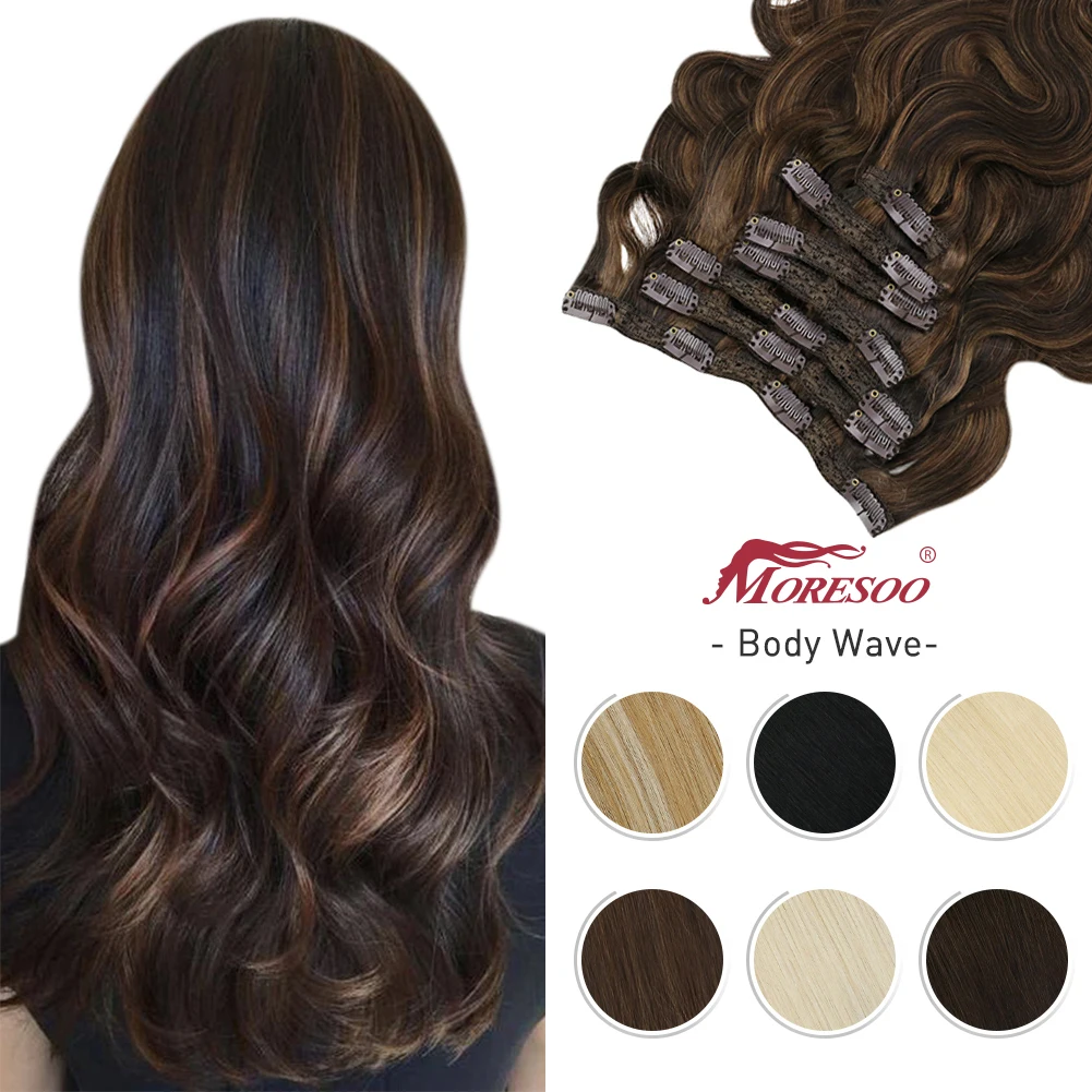 Moresoo наращивание волос с зажимом, человеческие волосы, волнистые волосы, полноголовочная машина, невидимые волосы с Двойным Зажимом Для Женщин, шиньон