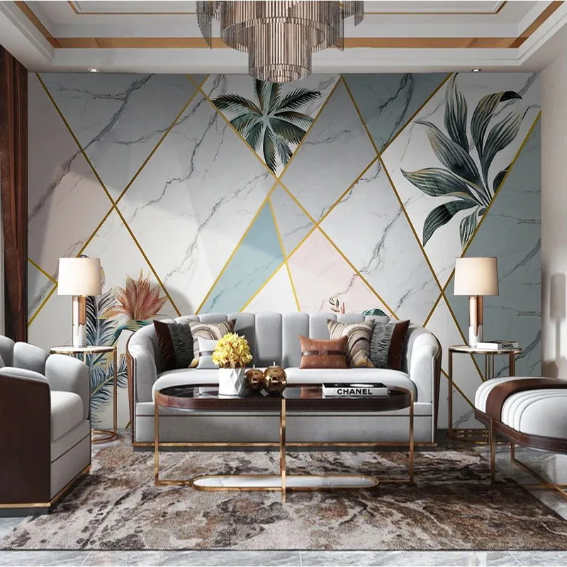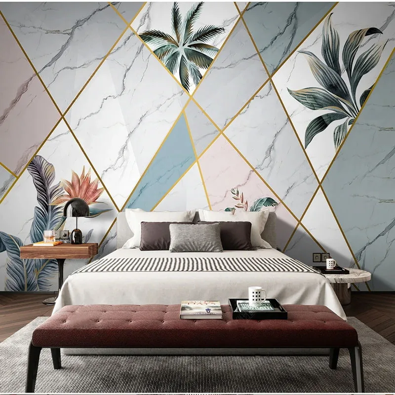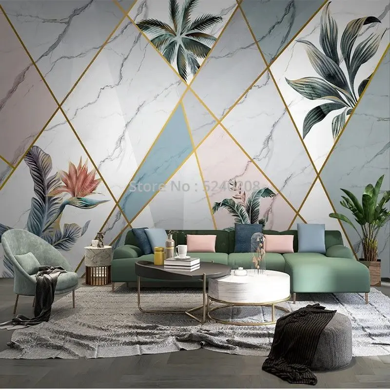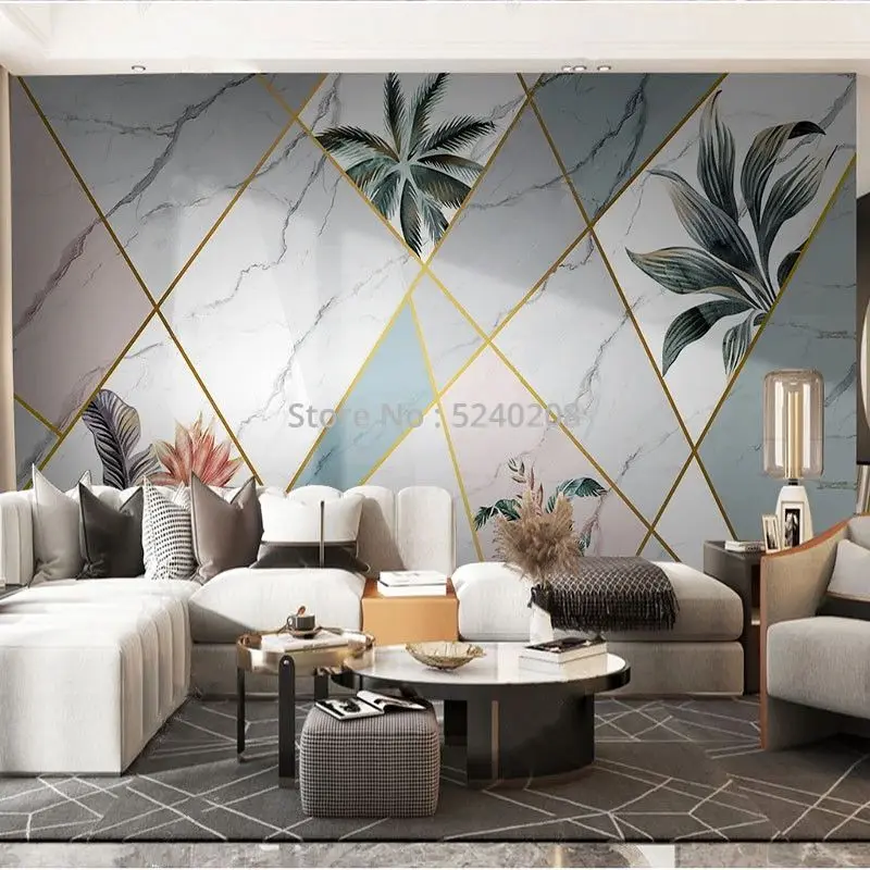 Самоклеящаяся настенная бумага на заказ, водонепроницаемый простой мраморный узор, Тропическое растение, роскошный фон для телевизора, 3D обои