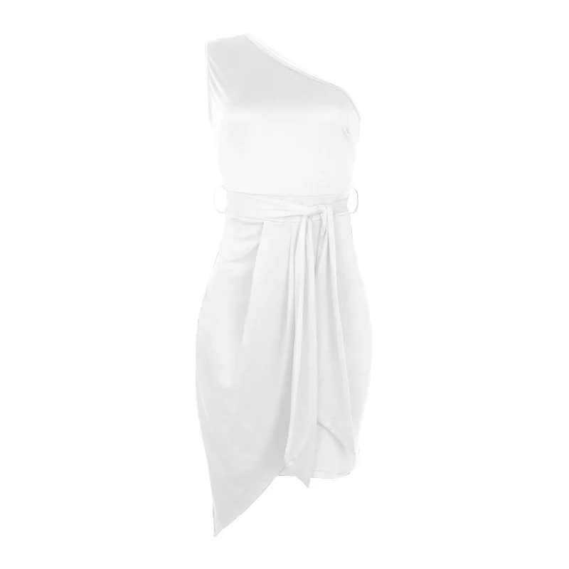 Летнее мини-платье на одно плечо с косым воротником, 2021, женские ...
