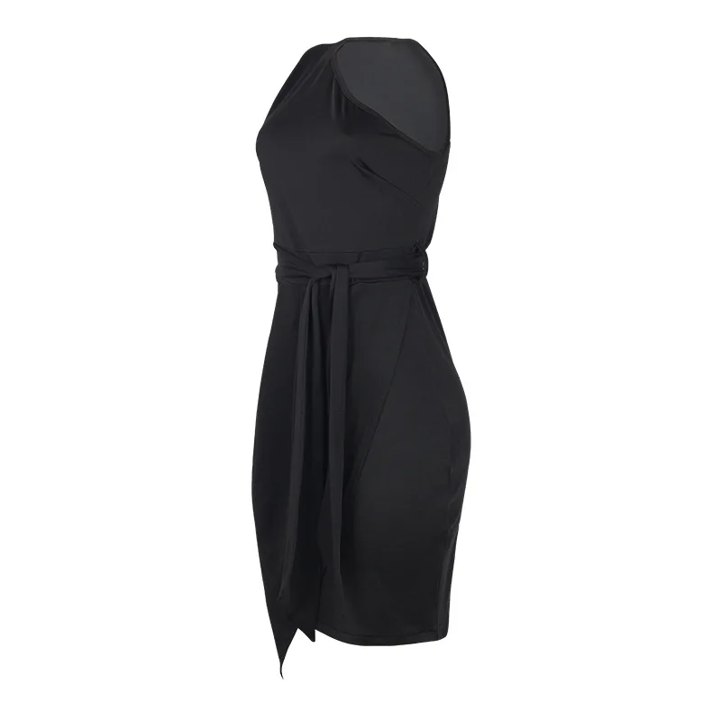 Женское Ассиметричное платье с поясом, элегантное однотонное платье...