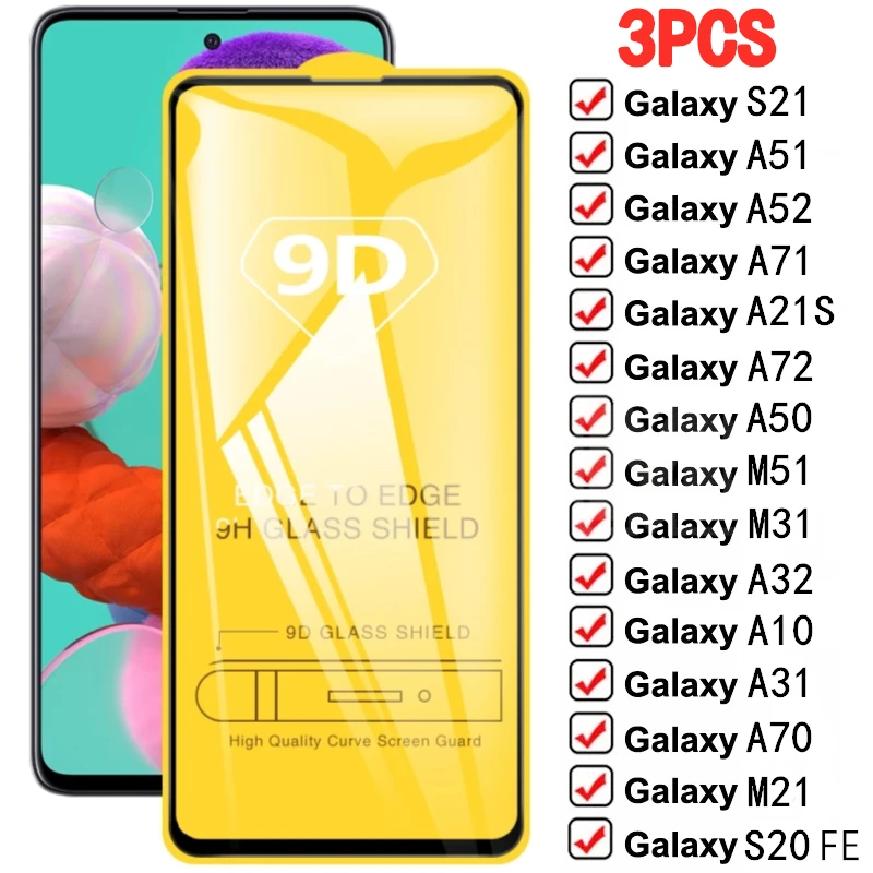 Закаленное стекло 9D для Samsung Galaxy, Защитная пленка для экрана Samsung A51, A50, A52, A71, A72, A10, A21S, M51, M31S, A32, S20, FE, S21 Plus, 3 шт.