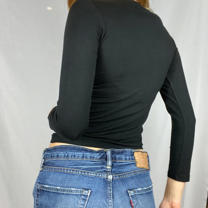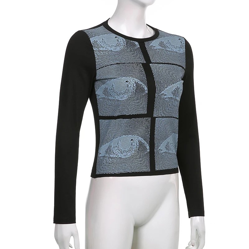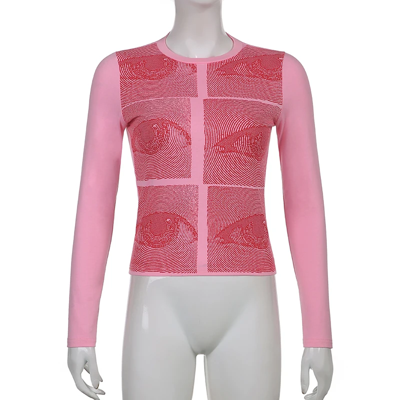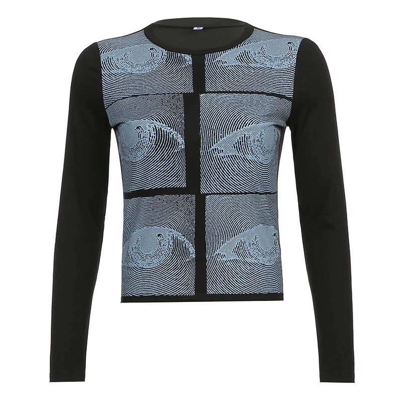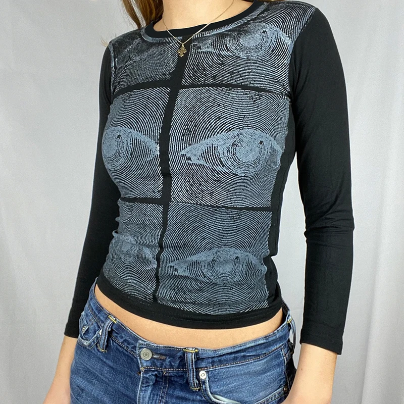 Женский укороченный топ с графическим принтом Rockmore, белая футболка с длинным рукавом и круглым вырезом для девочек, Винтажная Футболка 90s