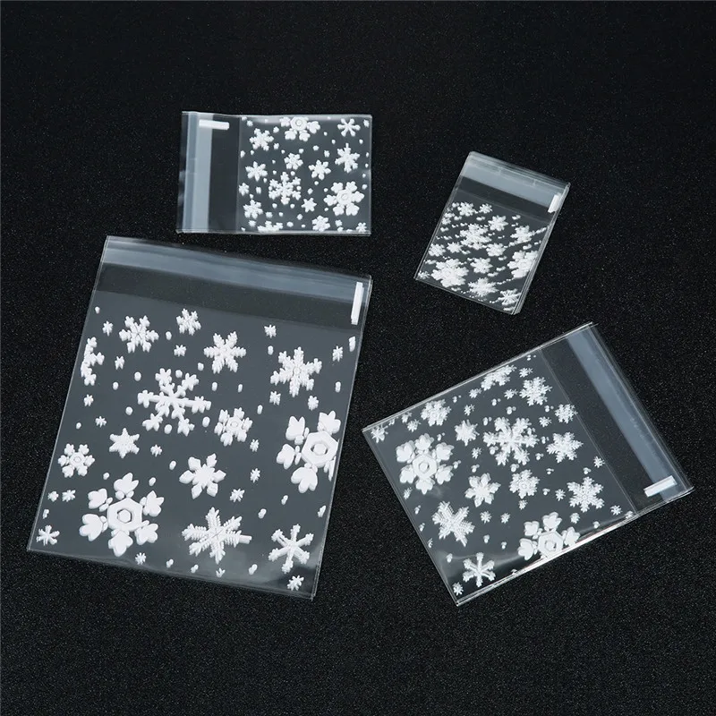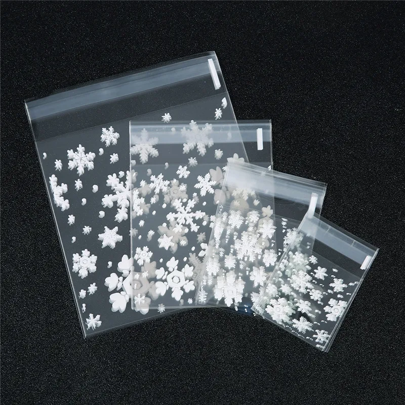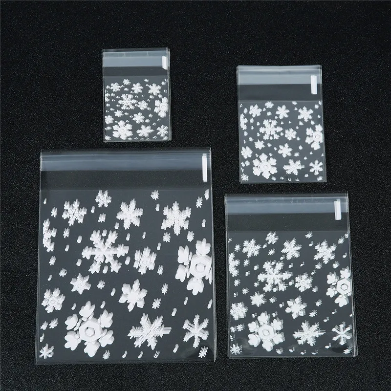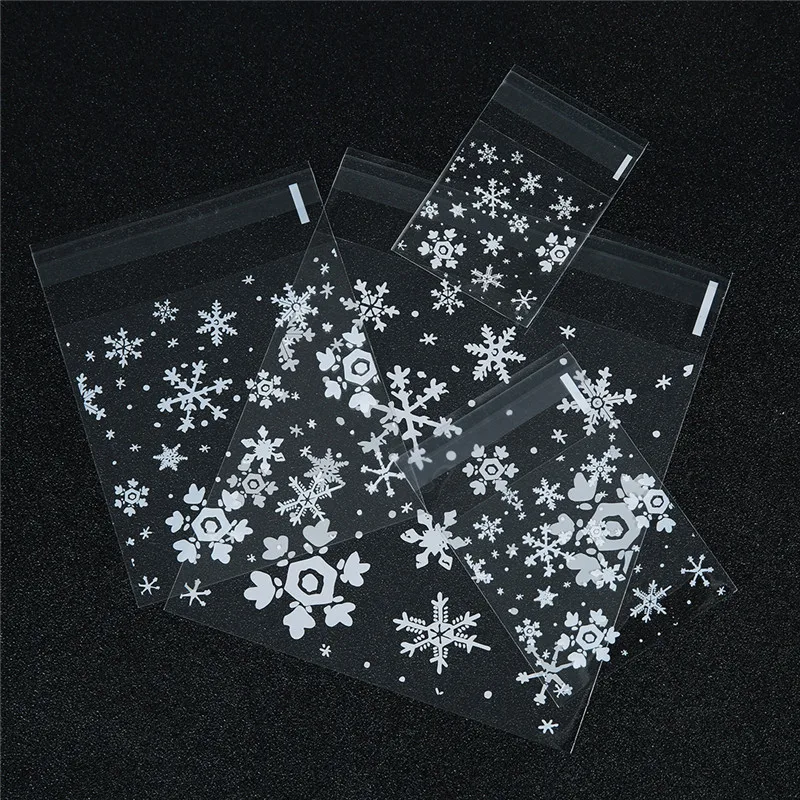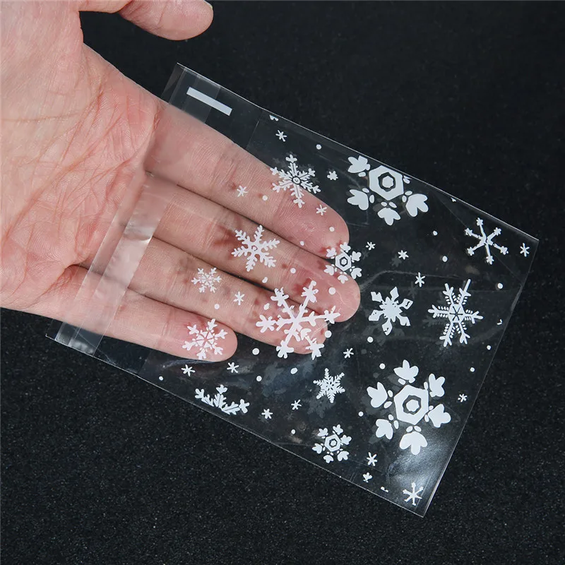 100 шт.лот, прозрачные рождественские подарочные пакеты со снежинками, самоклеящиеся пакеты для печенья, для праздников, вечеринок, подарочная упаковка