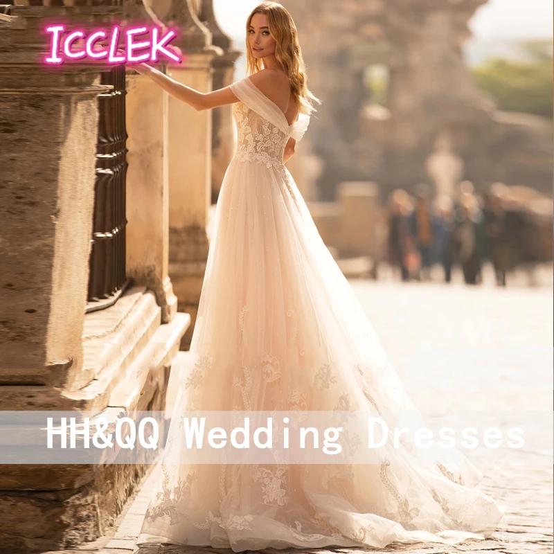 Романтическое свадебное платье с открытыми плечами, милое кружевное платье-трапеция с аппликацией и открытой спиной в стиле бохо, новинка, простое свадебное платье на заказ