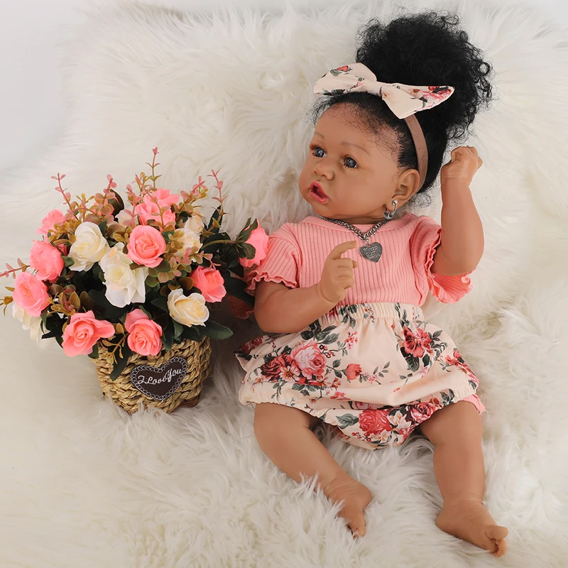 Кукла-Реборн, 58 см, темно-коричневая, силиконовая, мягкая, афроамериканская