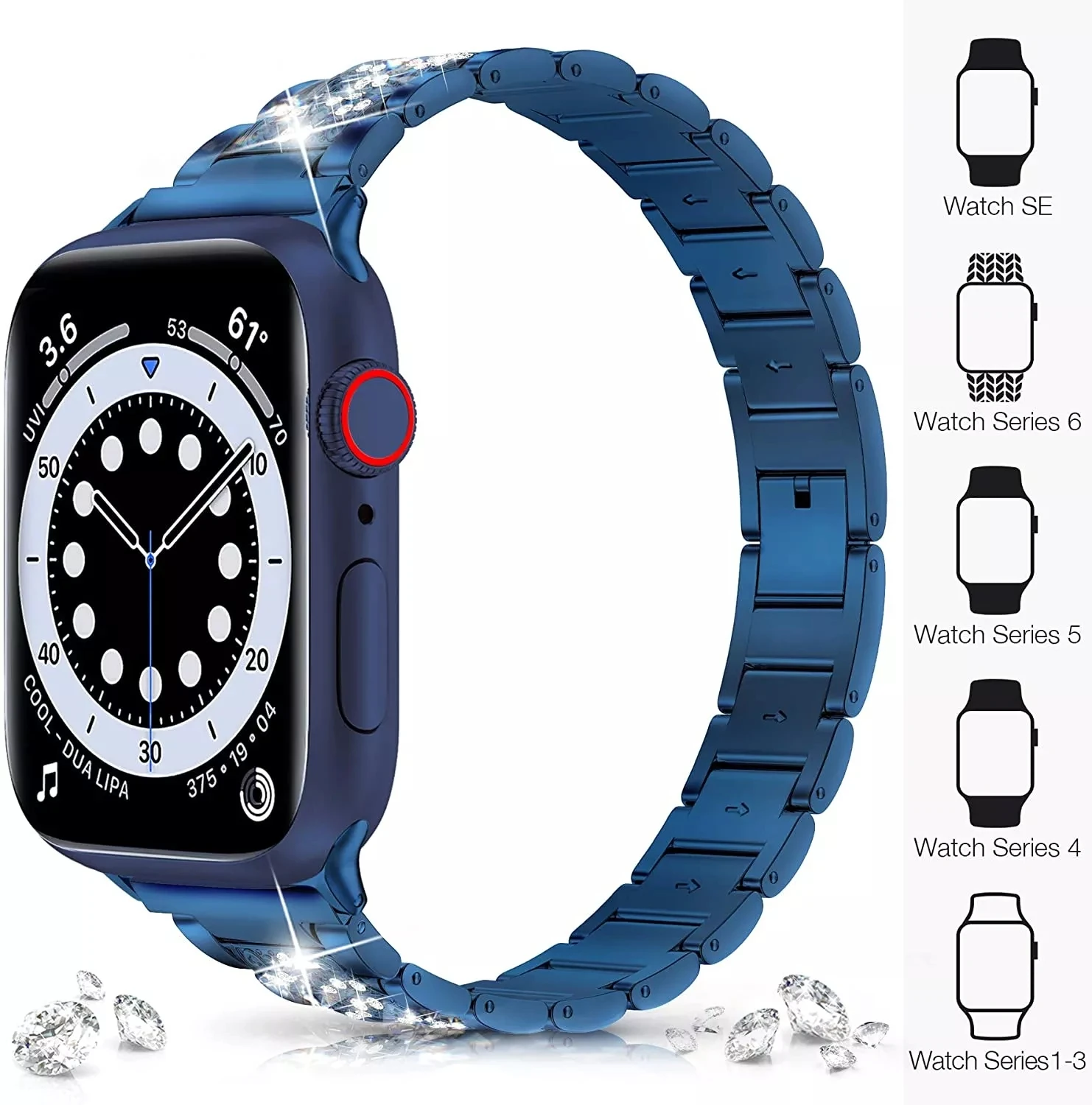 Ремешок для часов Apple Watch series, блестящий синий браслет для i...