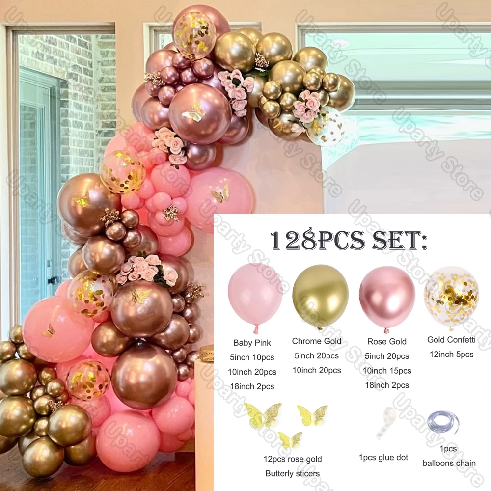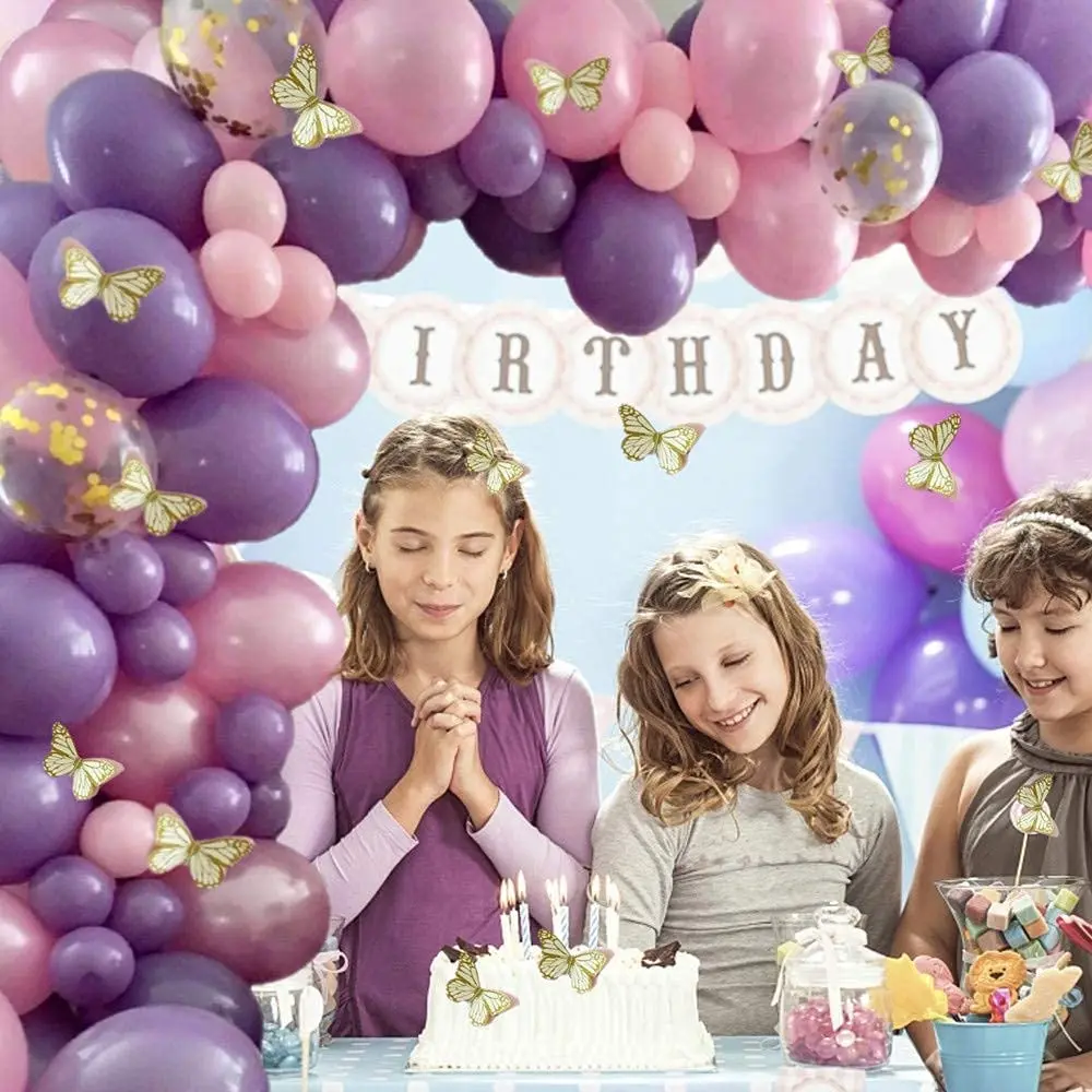 Воздушные шары-гирлянды Macaron, 1 комплект, розовое золото, Бабочка, металл, розовый, фиолетовый цвета, для дня рождения, свадьбы, вечеринки, воздушный шар, арка, украшения