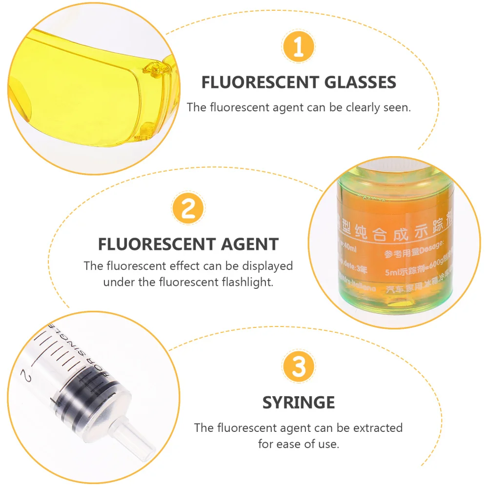 Изготовлено из высококачественных материалов, этот инструмент для обнаружения утечки воздуха может быть безопасно использован. Этот набор обнаружения утечки кондиционера в комплекте, с УФ-фонариком, флуоресцентным агентом, аккумулятором и флуоресцентными стеклами. Полный комплект, прост в эксплуатации и безопасен в использовании.