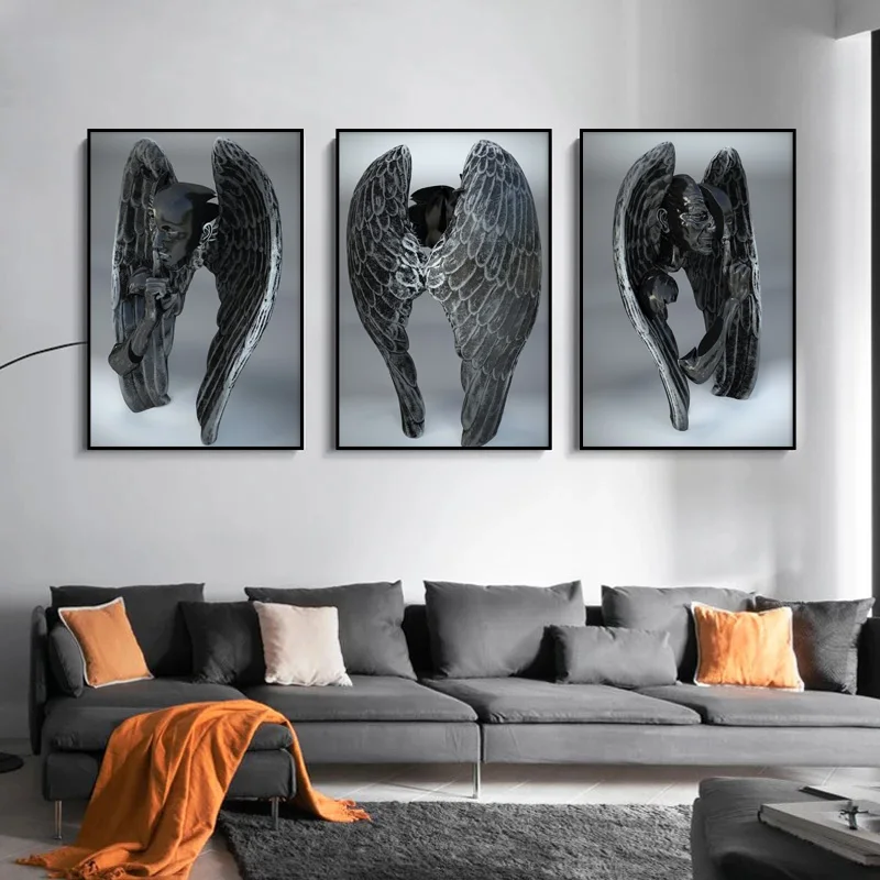 Металлическая фигурка, статуя, перья, искусство, холст, настенные п...