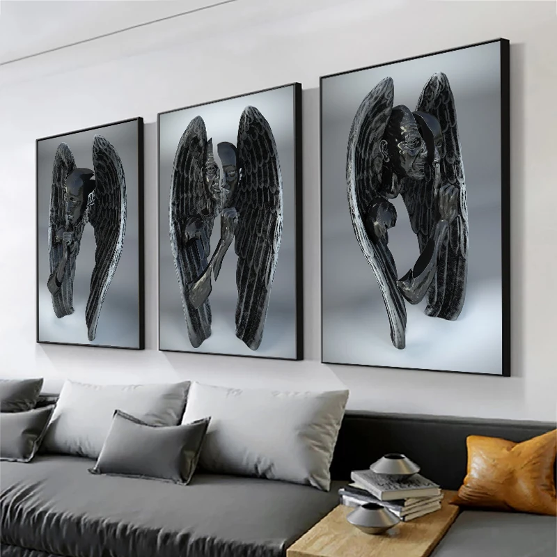 Металлическая фигурка, статуя, Картина на холсте, романтические абс...