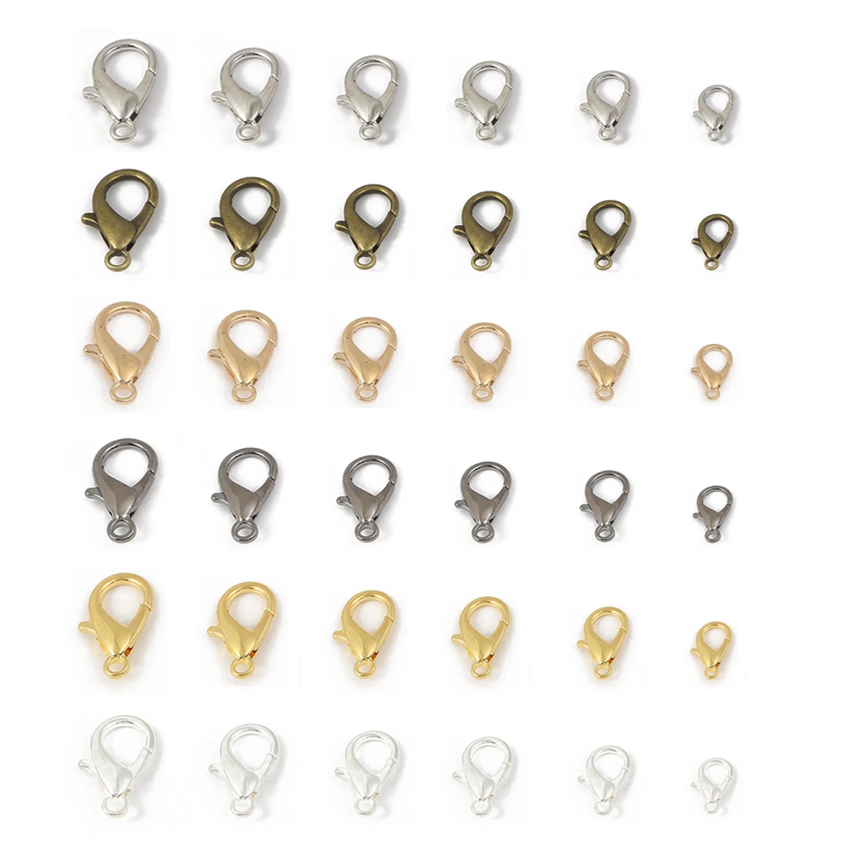 Застежки-карабины из сплава под золото и серебро, застежки для ожерелий, браслетов, цепочек, Концевики, фурнитура сделай сам для бижутерии, 101214161821 мм