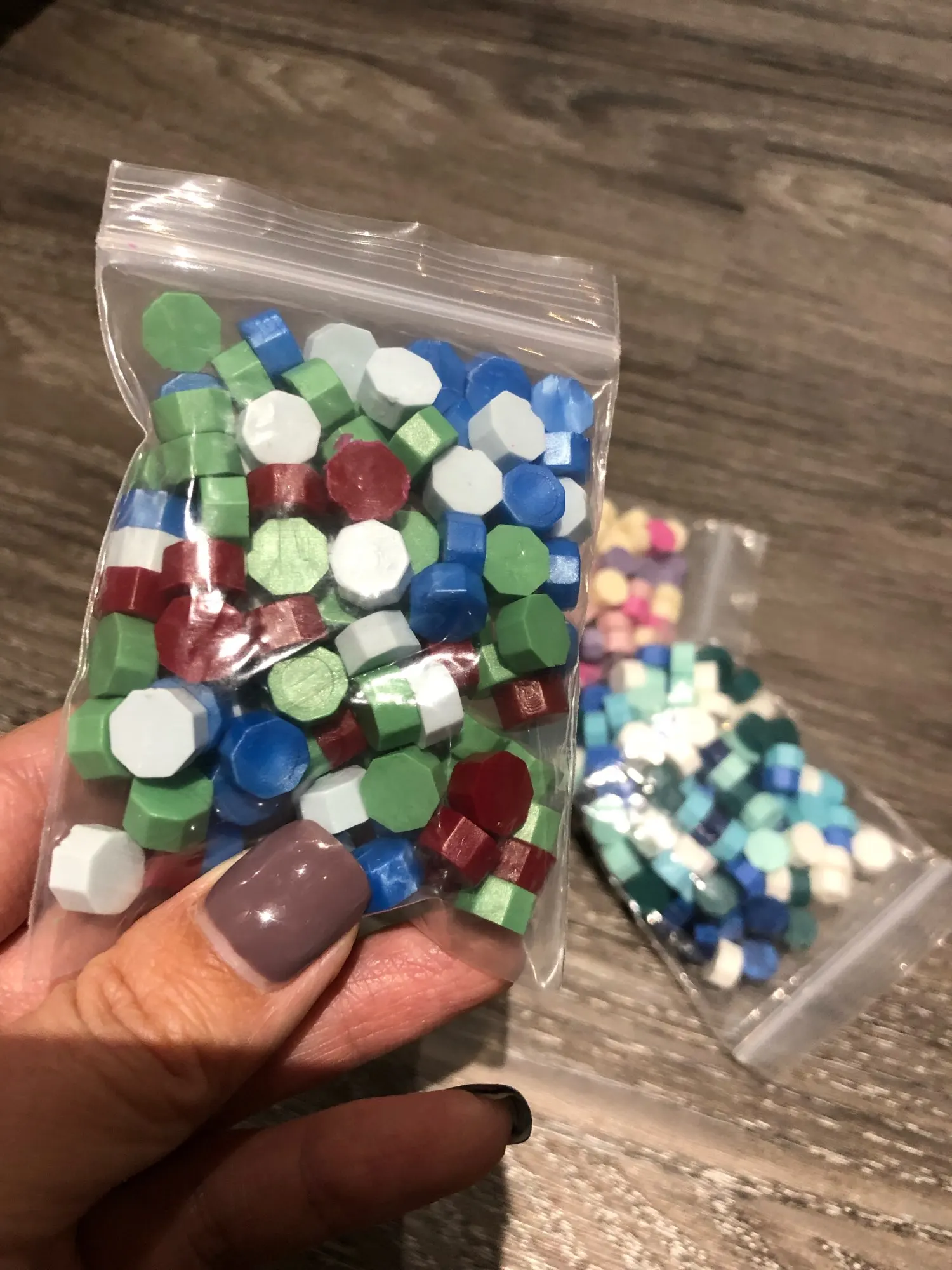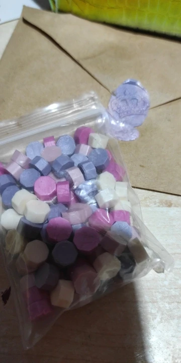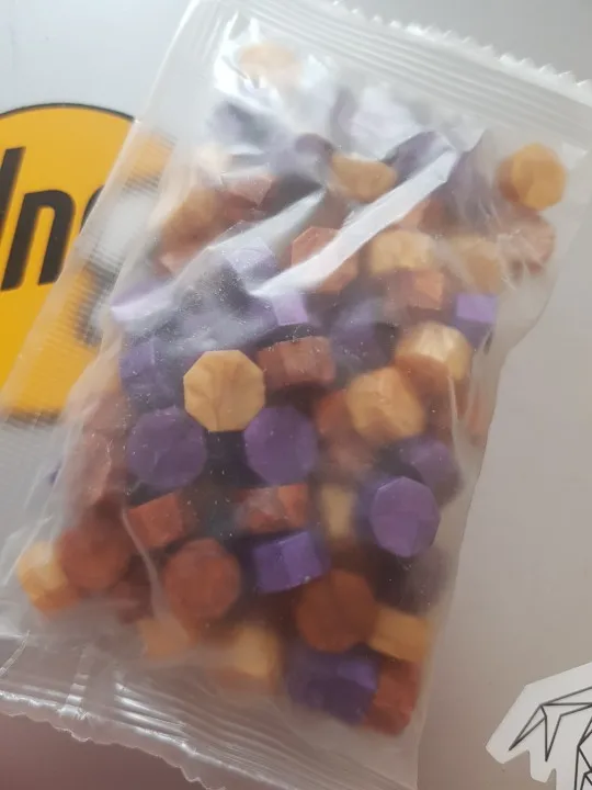 продавець швидко відправив товар і він швидко доїхав. це, звісно не натуральний сургуч, скоріше за все пластик. при розплавленні запах пластмаси і суміш трохи димить. для декоративних робіт піде. 1 кусочок розтікається в приблизно 1,5 см пляму. три кольори теж можна змішувати. застигає швидко