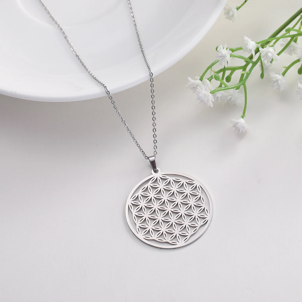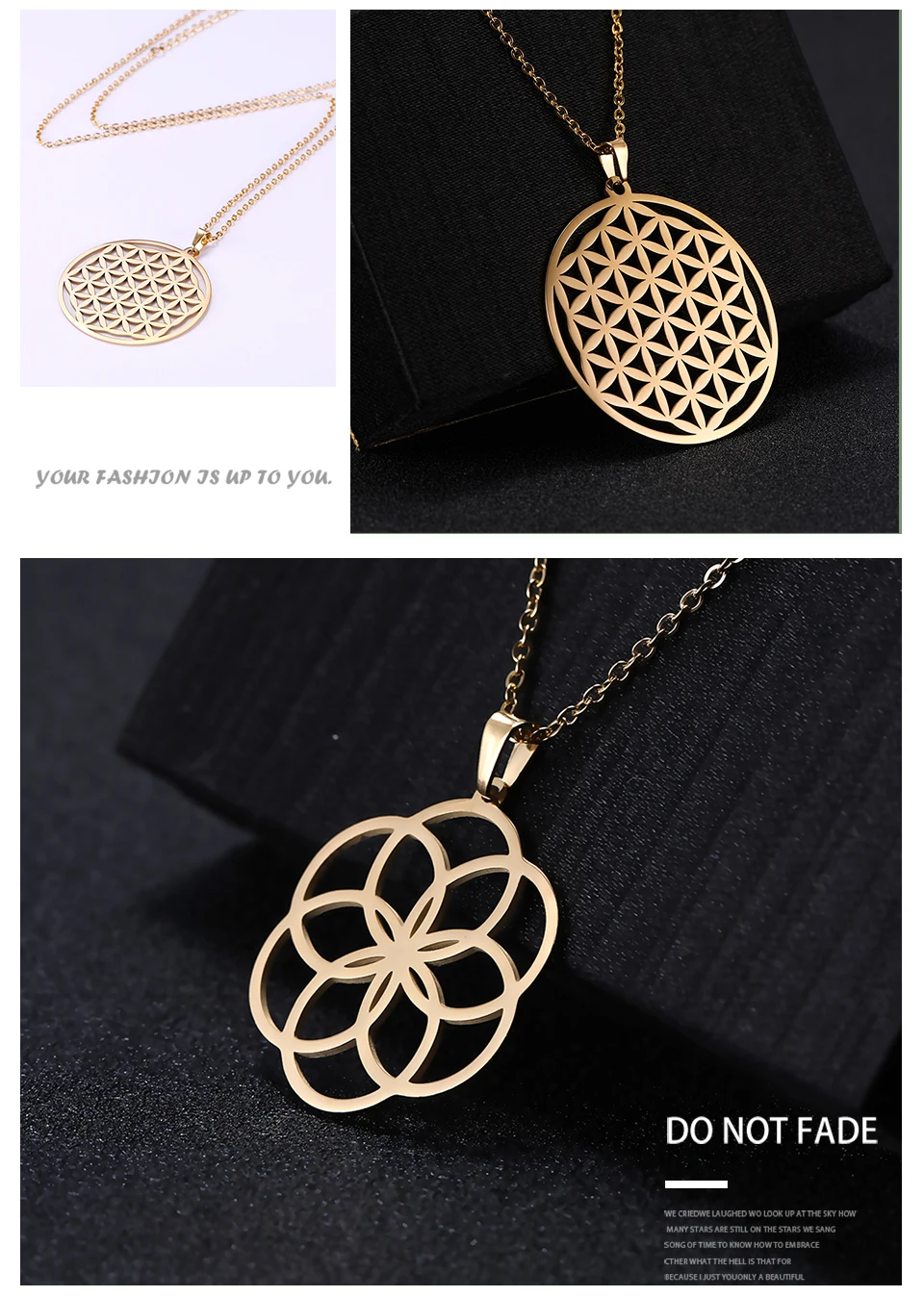 Чакра цветок жизни ожерелье из нержавеющей стали чокер Мандала для мужчин женщин натуральный винтажный амулет викингов геометрические ювелирные изделия