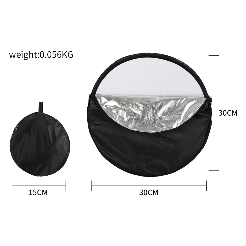 Маленький отражатель 30 см, легко носить с собой, портативная съемка используется для Мобильный телефон (селфи)Характеристики:Поверхности: золото, серебро, белый, черный и полупрозрачный.Форма: круглая