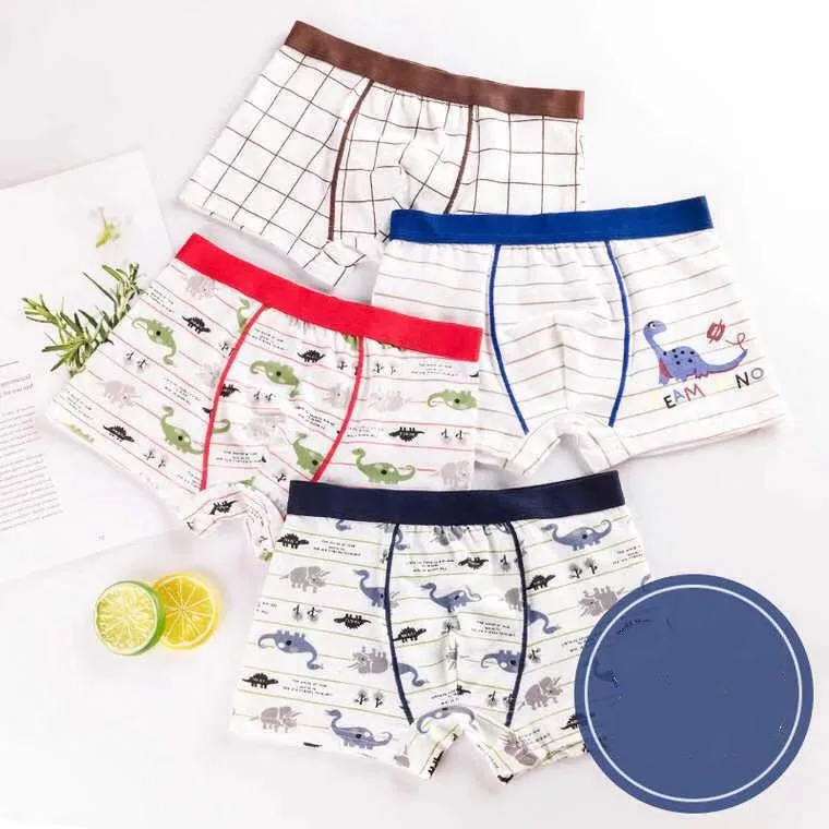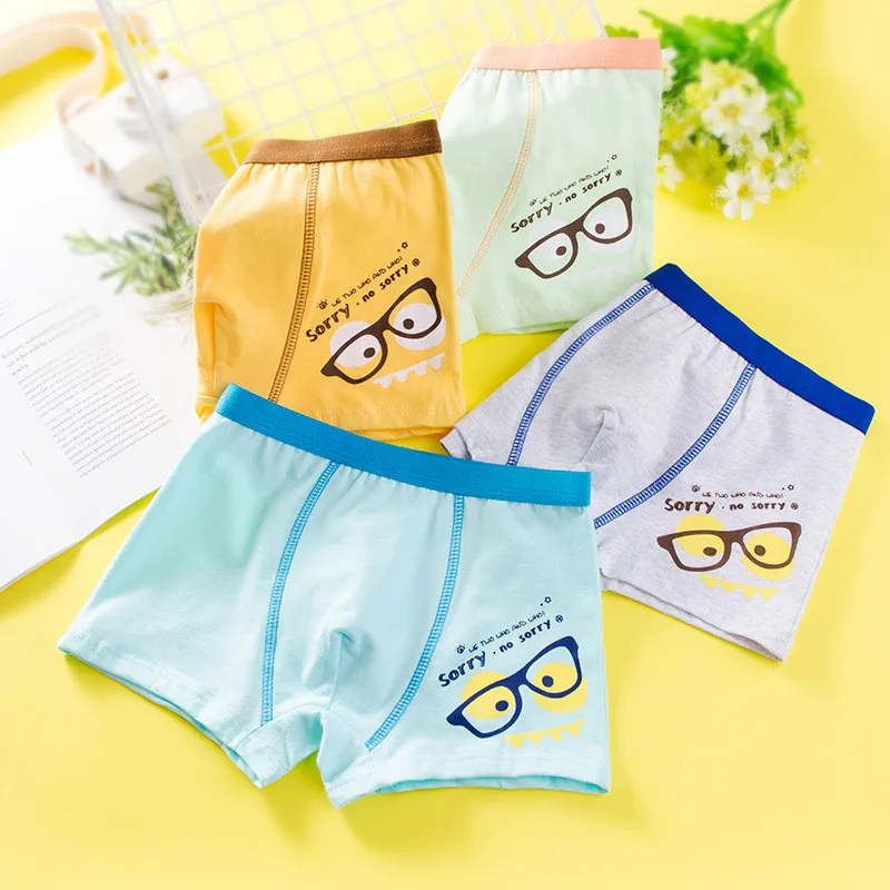 Хлопковые трусы-боксеры для мальчиков, дышащие и удобные детские трусы с принтом, 4 шт.комплект