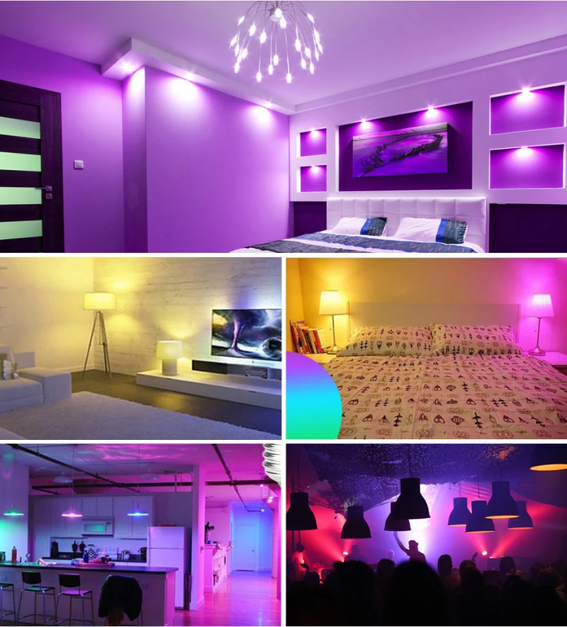 Экономия энергии и Многофункциональность: сверхнизкое энергопотребление и Экономия более 60% энергии по сравнению с обычной лампой. Лампочку можно использовать в любом месте, где вам нужен красосветильник с умным управлением. Такие как дом, гостиница, конференц-зал, рестораны, бар, кафе, праздник.