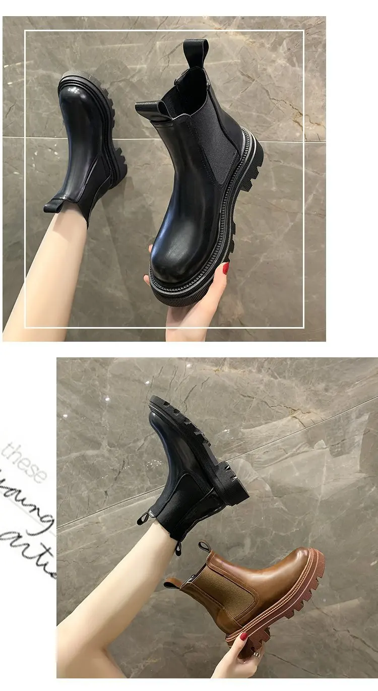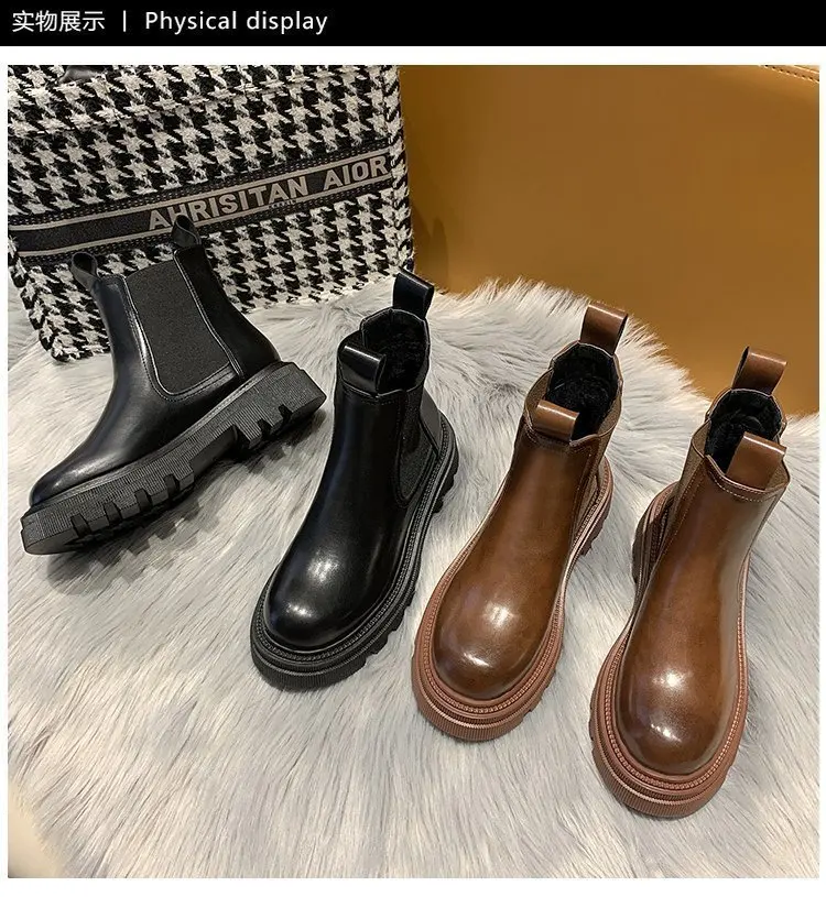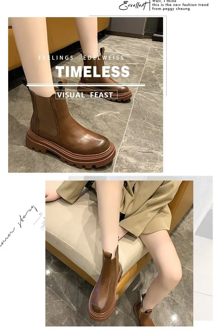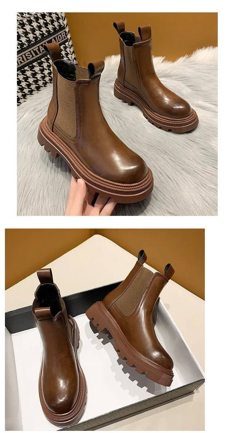 Ботинки-челси женские кожаные, коричневые, на толстой подошве, Осень-зима