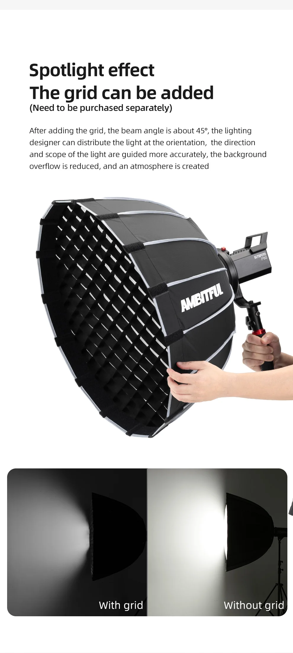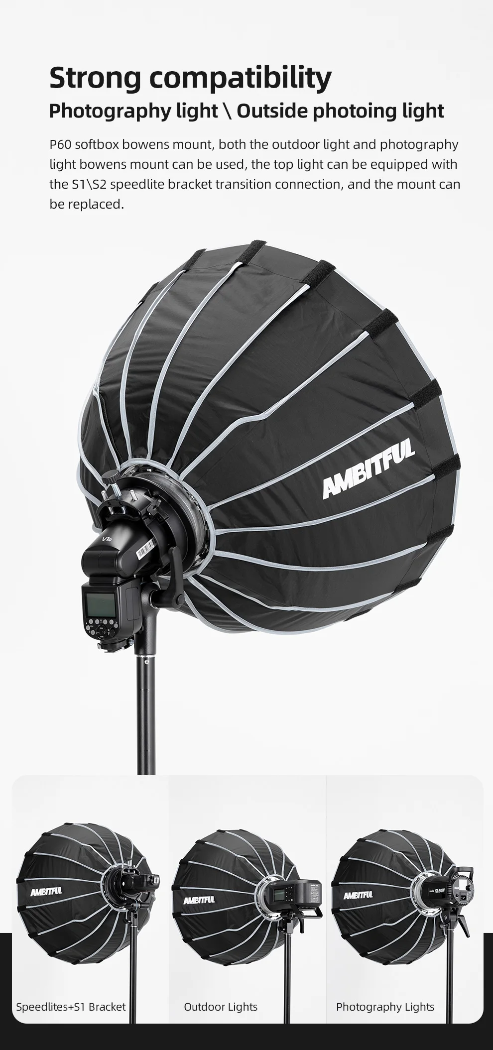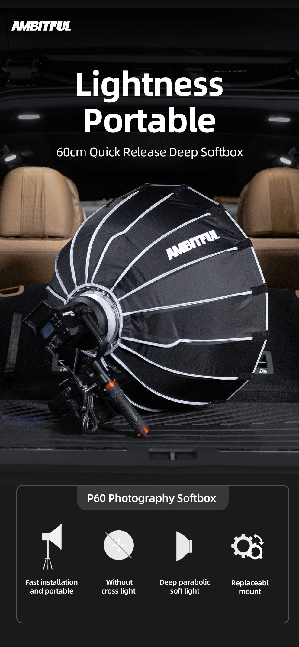 Портативный параболический софтбокс AMBITFUL P60, быстрая установка...