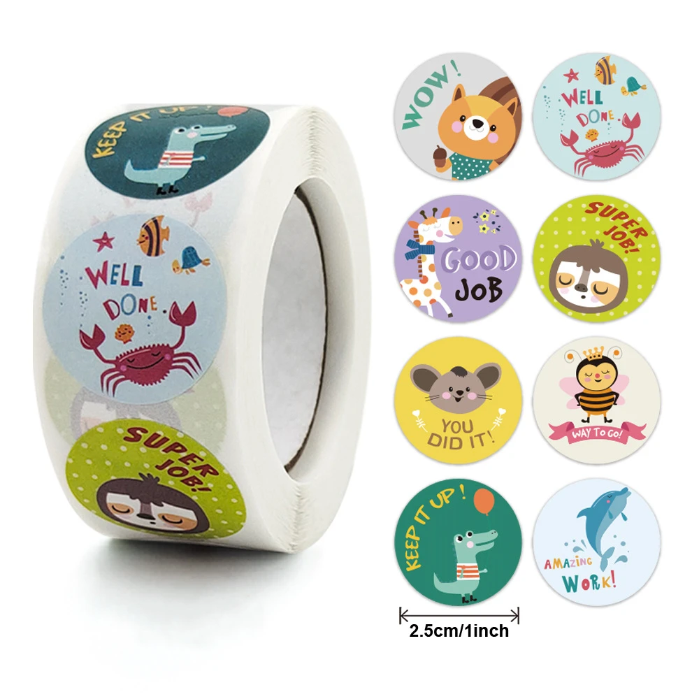 Наклейки с милыми мультяшными животными, 1 дюйм, 500 шт.