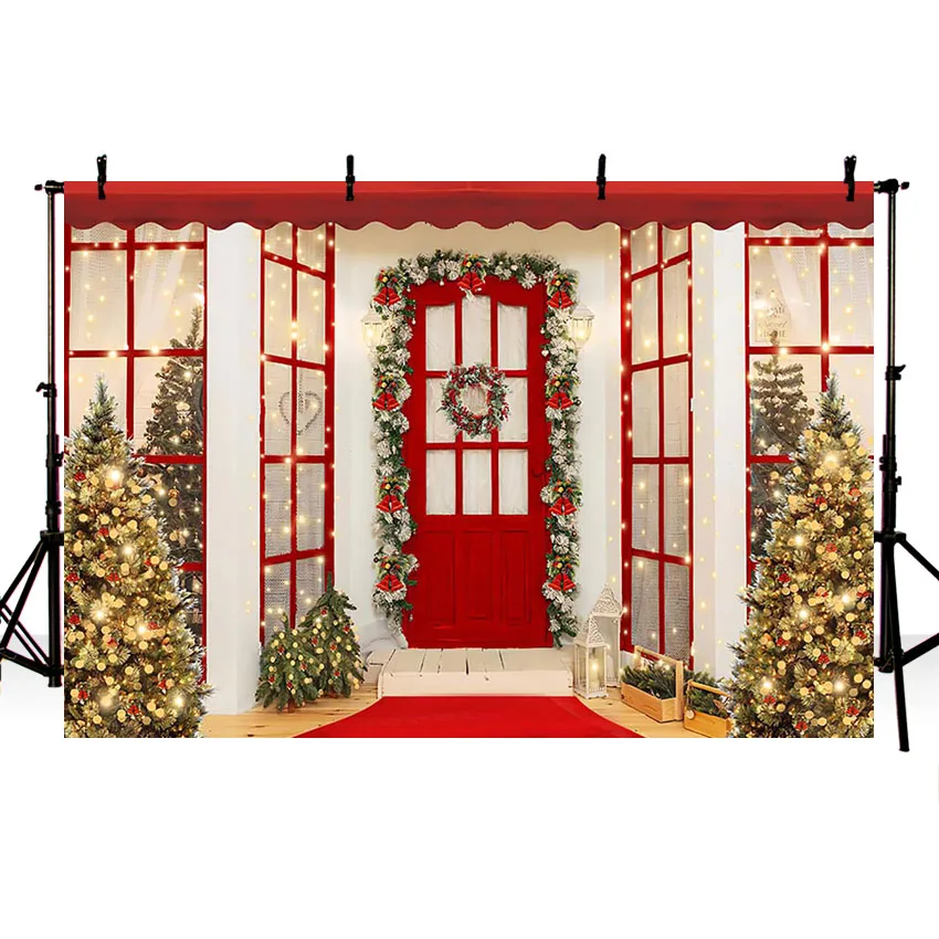 Фон для фотосъемки Mehofond зима Рождество красная дверь деревья Блестящий крыльцо дети семейный портрет фон реквизит для фотостудии