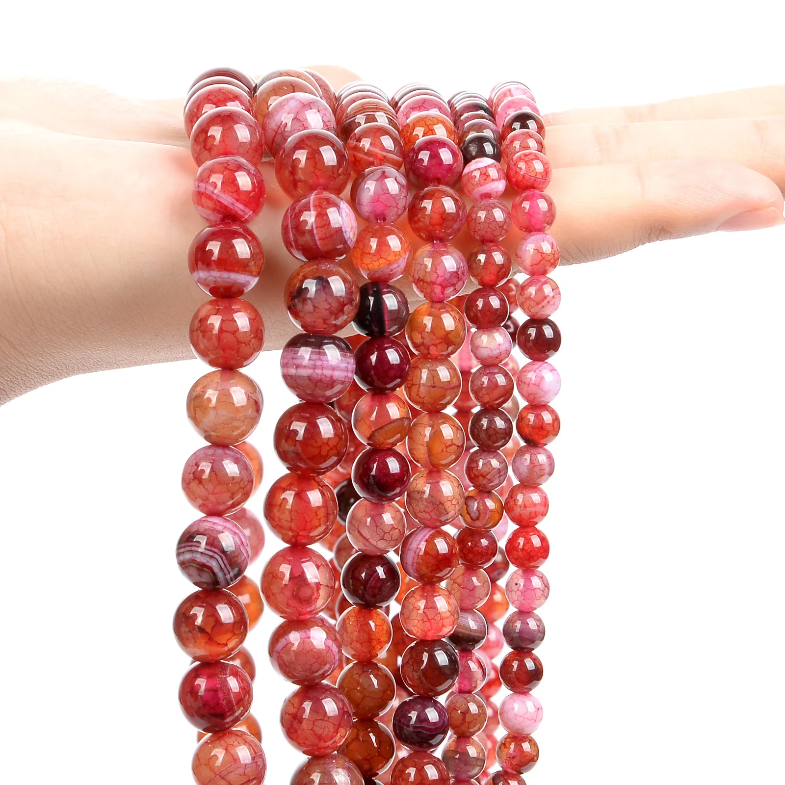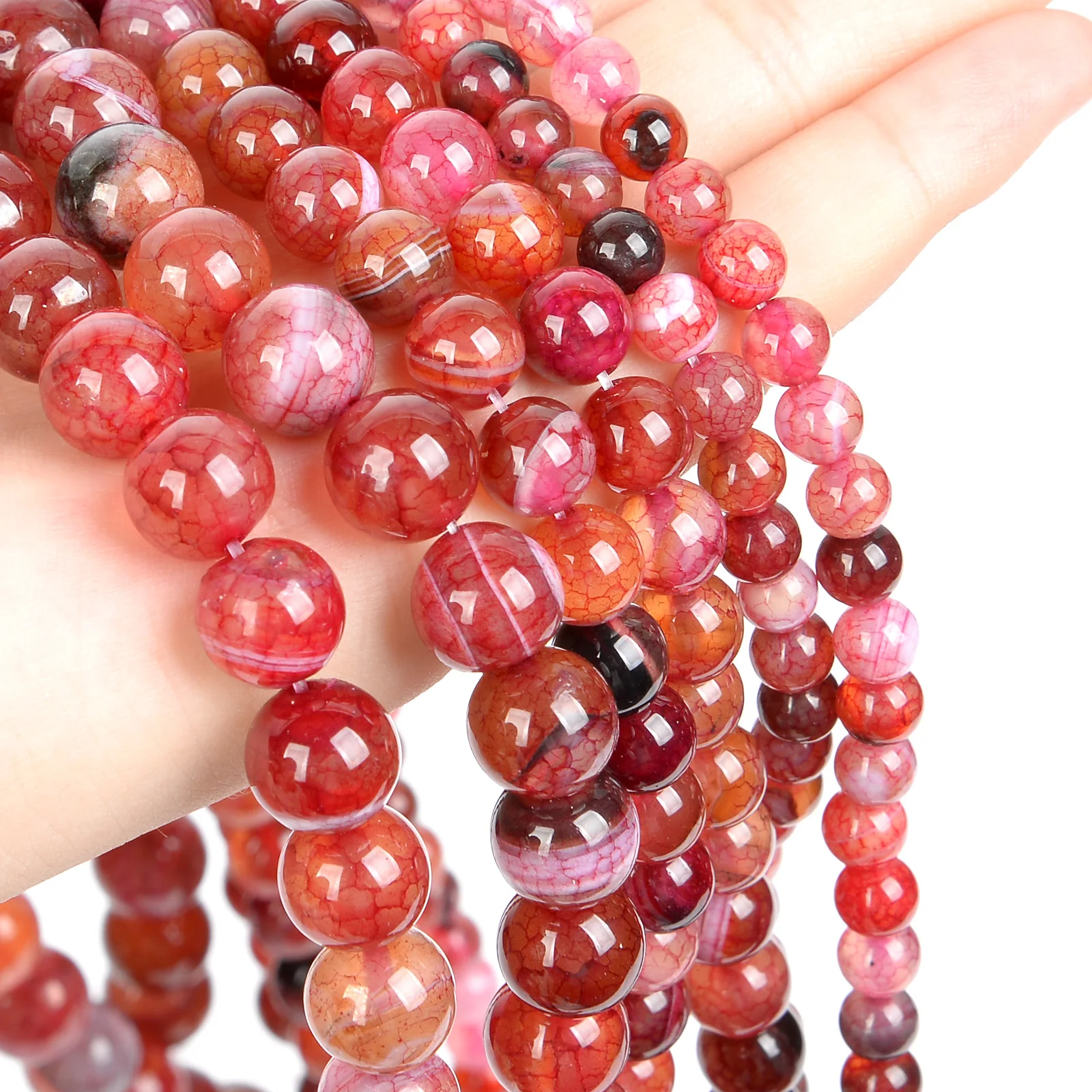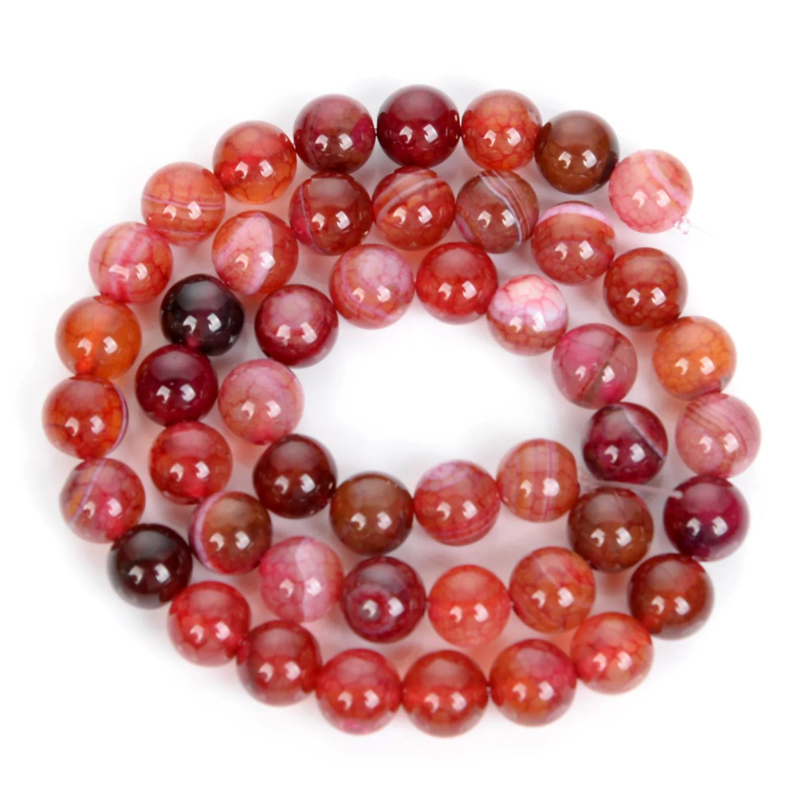 Бусины из натурального агата с венами Красного огня дракона, круглы...