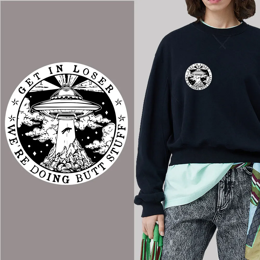 Индивидуальный тренд, Круглый Инопланетянин, космический корабль, буквенный принт, наклейка, узор, теплопередача, ПВХ патч, Звездный путь, патч, термонаклейки