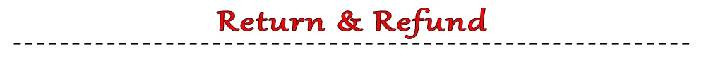 1. У вас есть 7 дней, чтобы связаться с нами, и 30 дней, чтобы вернуть товар с даты его получения. Если этот товар находится в вашем распоряжении более 7 дней, он считается Б/у, мы не вернем Вам деньги или заменим товар. НИКАКИХ ИСКЛЮЧЕНИЙ! Стоимость доставки оплачивается как продавцом, так и покупателем пополам.2. Все возвращаемые товары должны быть в оригинальной упаковке, и вы должны предоставить нам номер отслеживания доставки, конкретную причину возврата и ваш номер заказа.3. Мы вернем вам полную сумму победившей заявки после получения товара в его первоначальном состоянии и упаковке со всеми компонентами и аксессуарами в комплекте, После того, как и покупатель, и продавец отменят сделку с aliexpress. Или вы можете выбрать замену.4. Мы берем на себя всю стоимость доставки, если товар (ы) не соответствует заявленному.