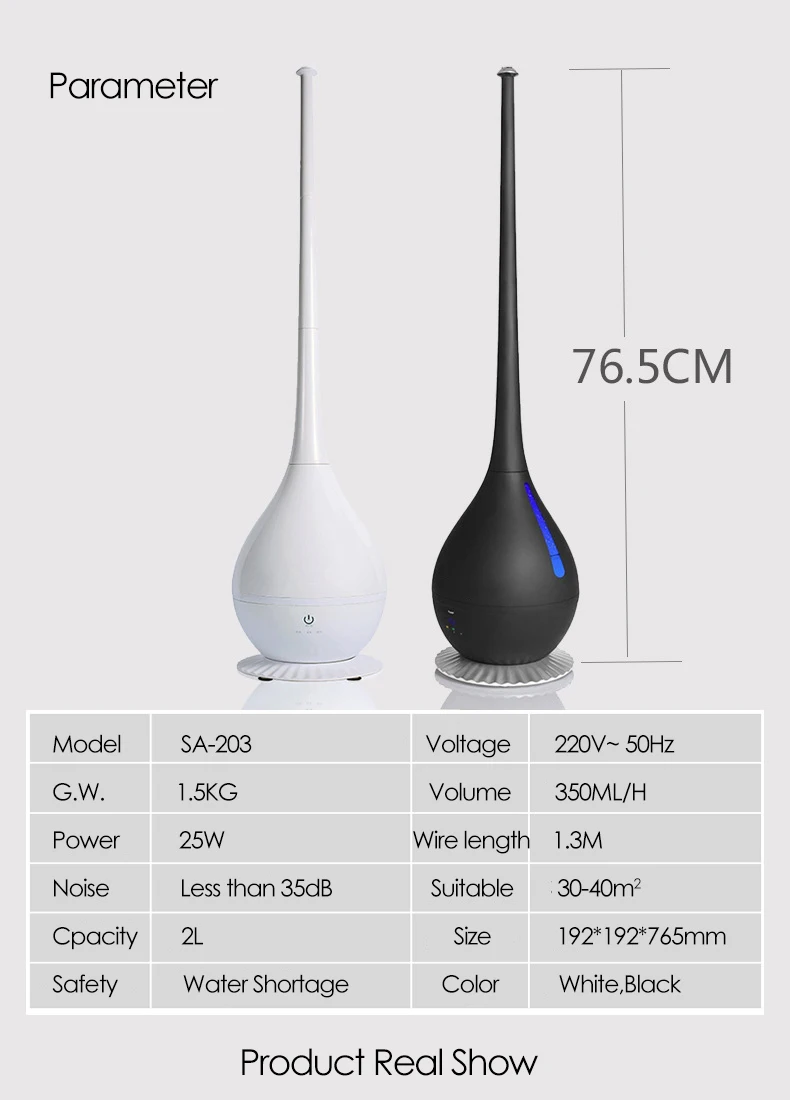 Название: напольный увлажнительНапряжение: 220 В-50 ГцМощность: 25 ВтЕмкость: 2 лРазмер: 192 мм * 192 мм * 765 ммОбъем: 350 мл/чРежим работы: 2 передачиШум: Менее 35 дБЦвет: белый, черный