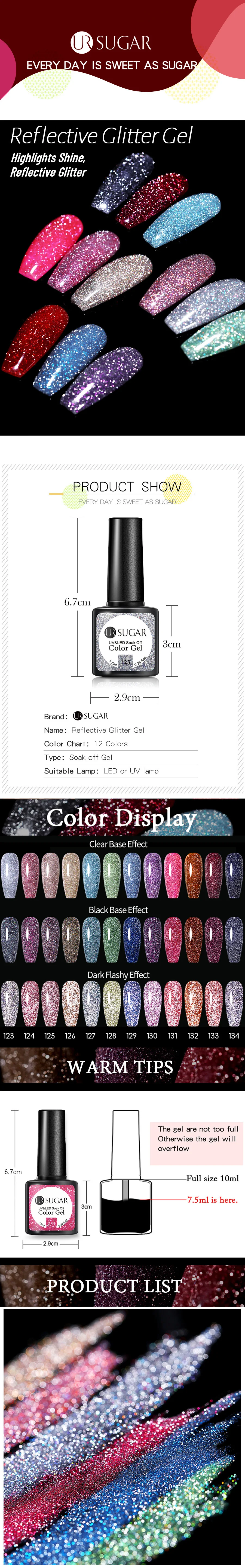 UR SUGAR светоотражающий Блестящий цветной гель отмачиваемый Гель-лак для ногтей Блестящий Радужный Auroras украшение для маникюра