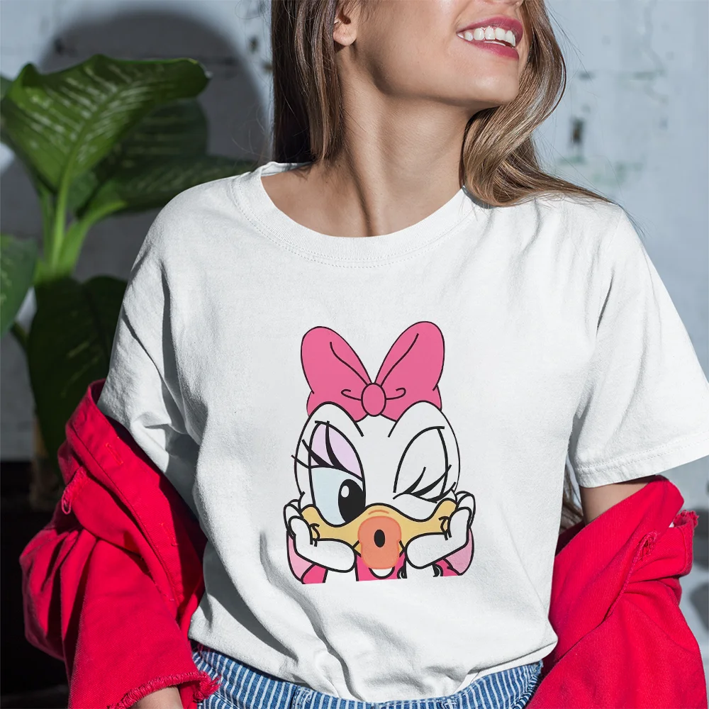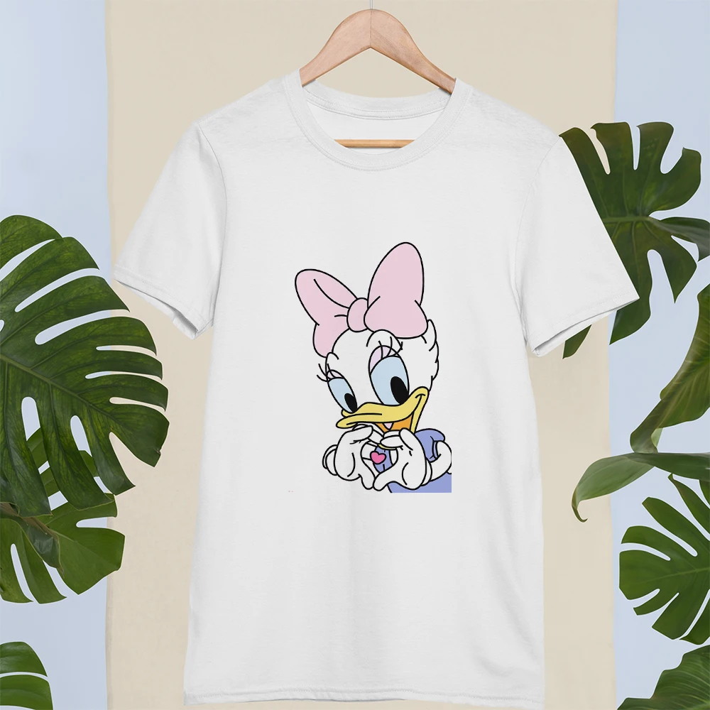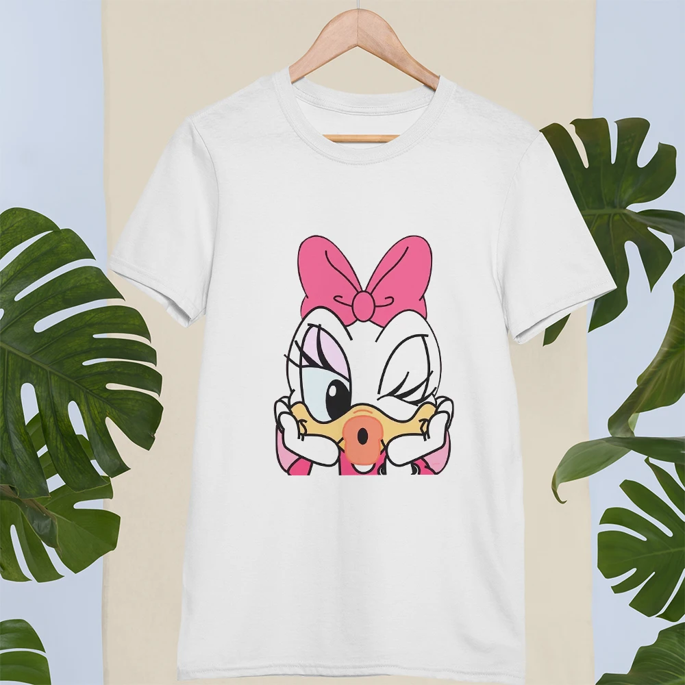 Женская футболка Disney Kawaii Dropship, летняя новая повседневная мода Harajuku Four Seasons, черно-белая футболка, женская милая футболка с принтом ромашек
