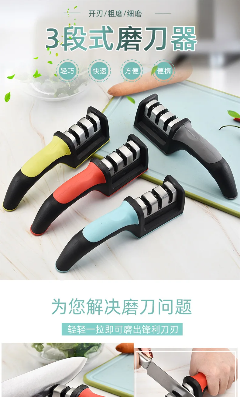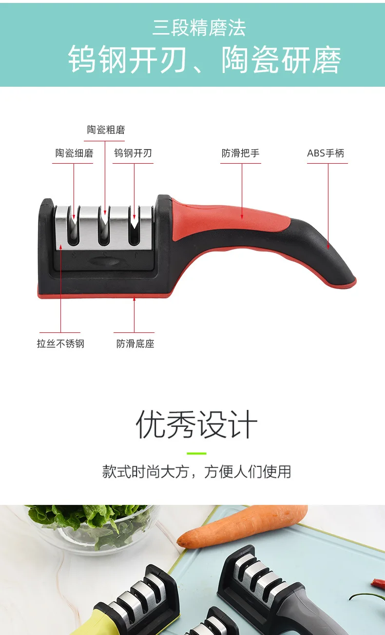 Мини-точилка для ножа керамическая трехступенчатая точилка, точилка, точильный камень, кухонный инструмент, аксессуары для ножей
