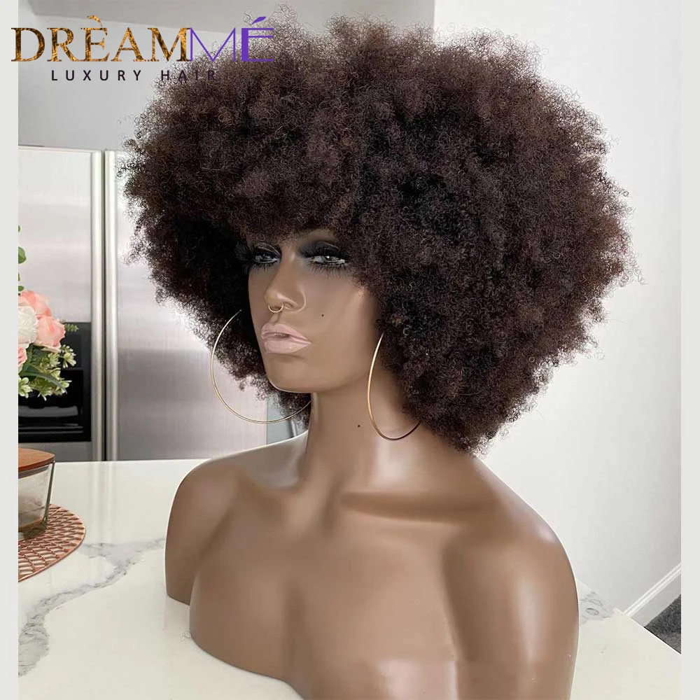 Афро кудрявые короткие Боб полная машина дешевый парик с челкой 180% плотность бразильский Реми безклеевые человеческие волосы парики для черных женщин