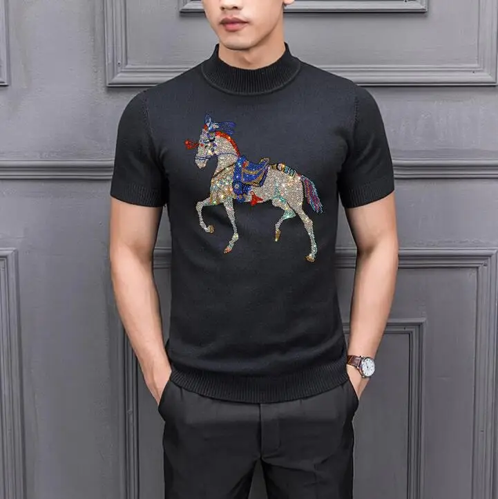 Летние модные мужские свитеры со стразами, футболка, тонкие вязаные...