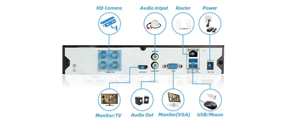 1CH audio input 1CH audio outputSupport AHD/Analog/TVI/CVI/IP Camera