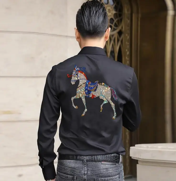 Мужская Летняя Повседневная рубашка с длинным рукавом, Мужская Облегающая рубашка, мужские топы