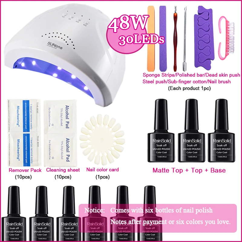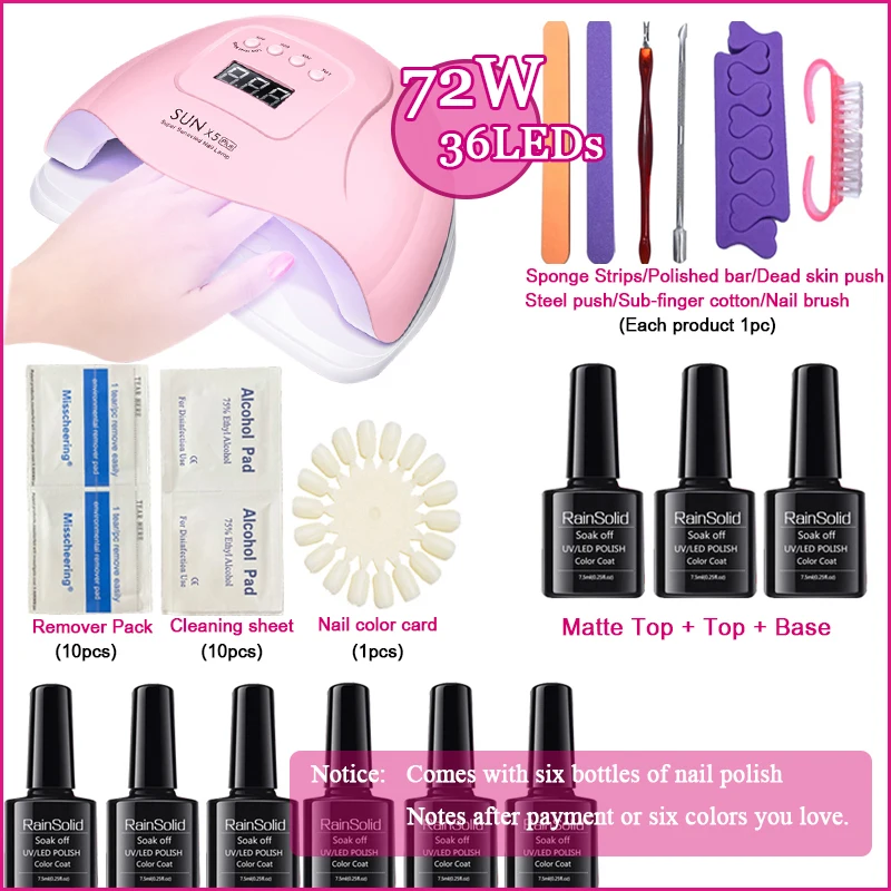 Профессиональный 6 шт. набор гель-лаков для ногтей с УФ лампой телесный гель полуперманентный Гибридный лак База верхнее покрытие Отмачивание LED дизайн ногтей
