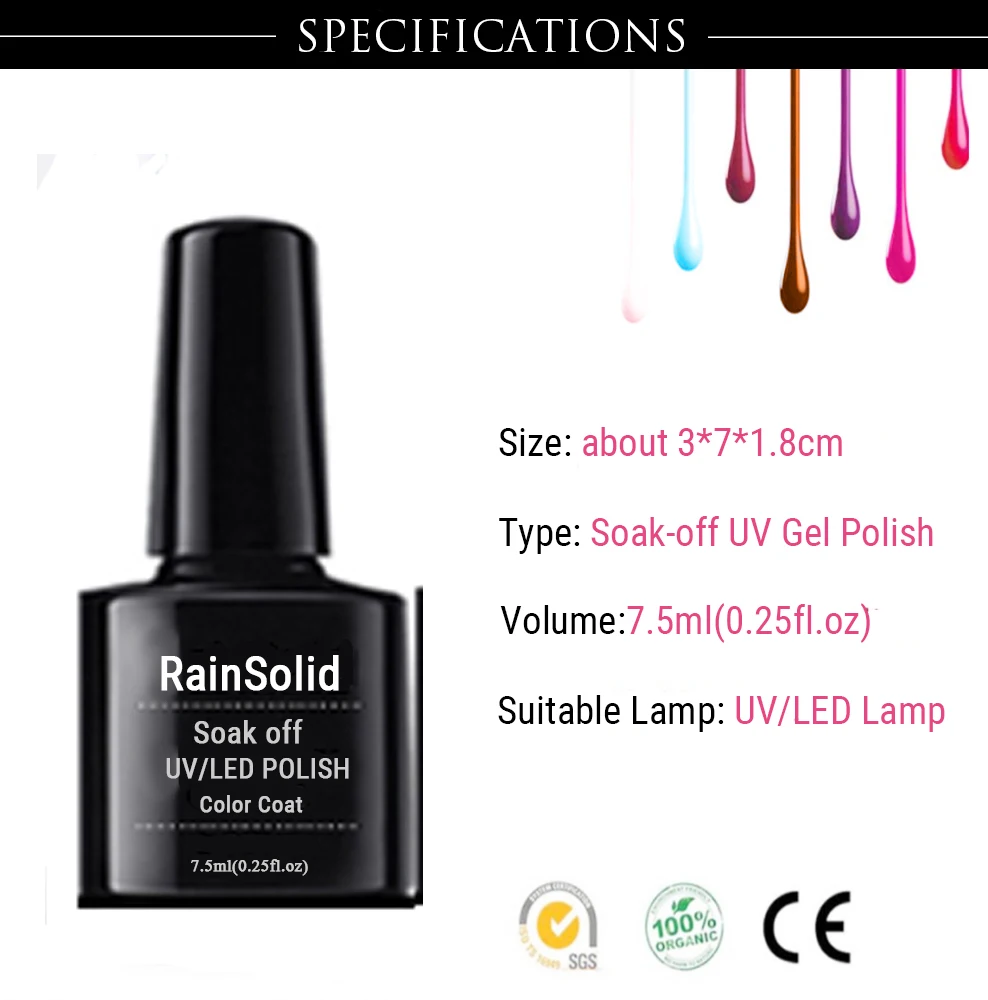 5. Требования: необходимо использовать с базовым и верхним покрытием, раствором для скольжения (опционально) и закреплять под УФ светодиодный Ной лампой для ногтей.