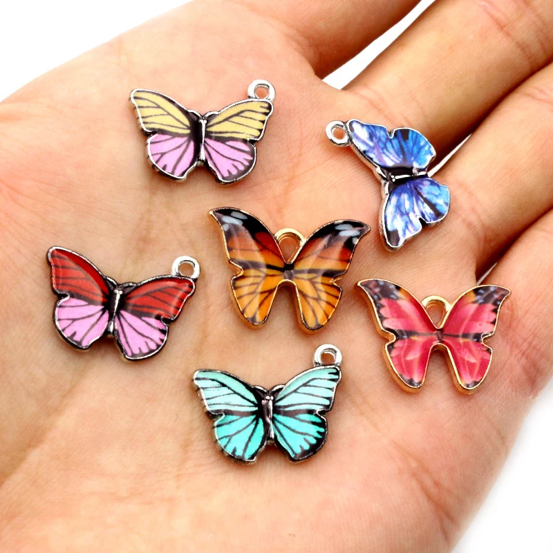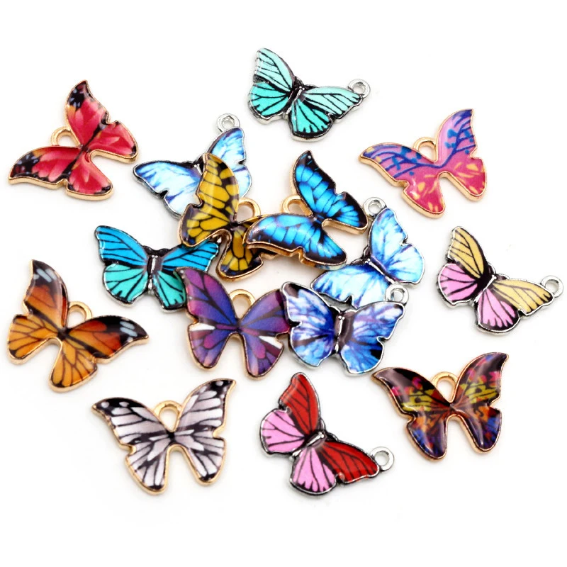 10 шт 21x15 мм 19x16 мм Красочные бабочки Подвески кулон эмаль металлические подвески ожерелье браслет DIY аксессуары для изготовления ювелирных изделий