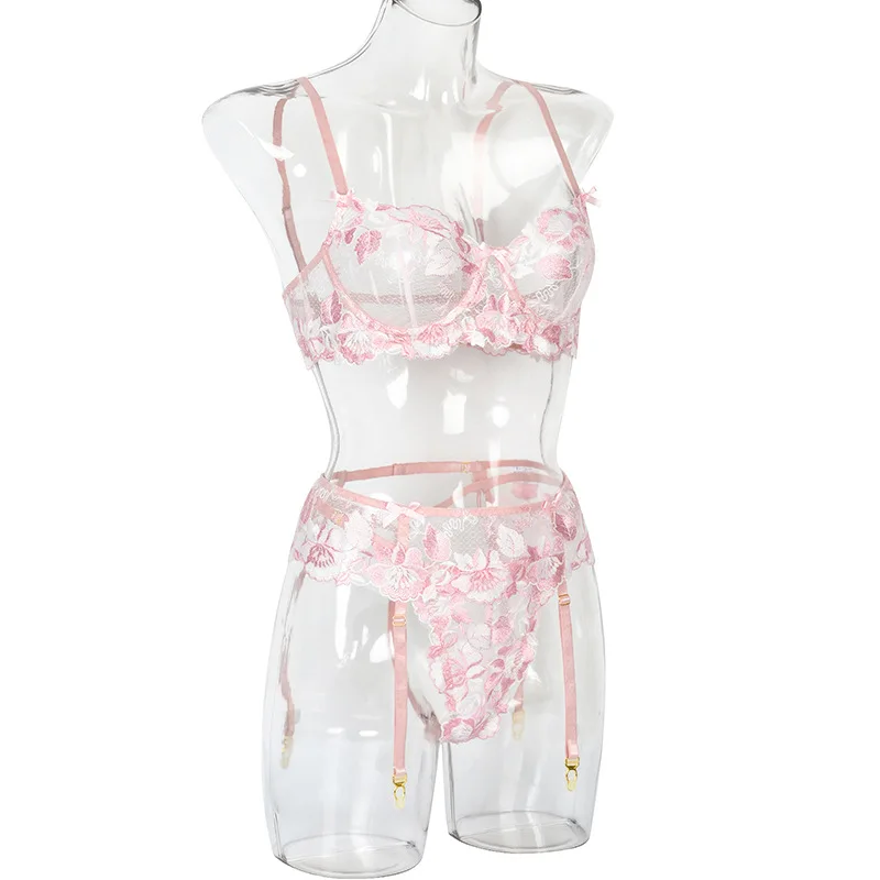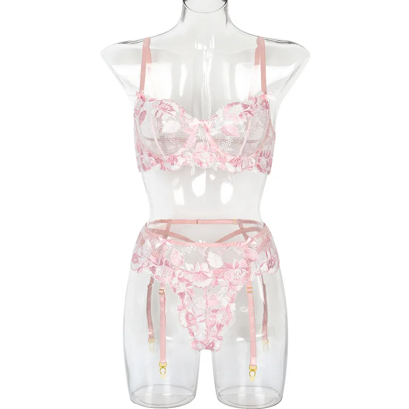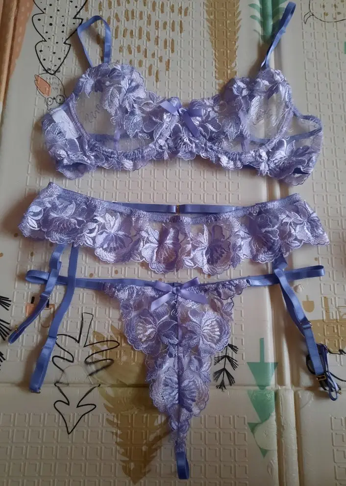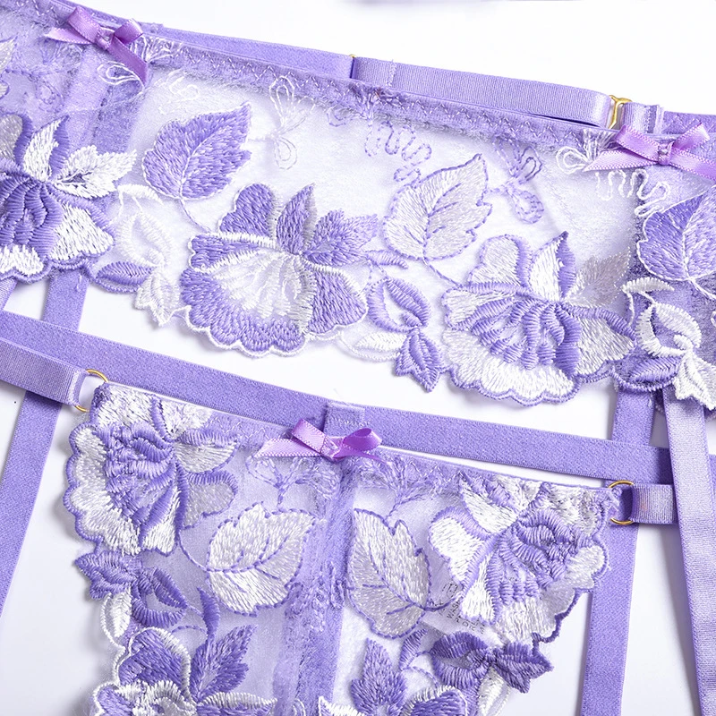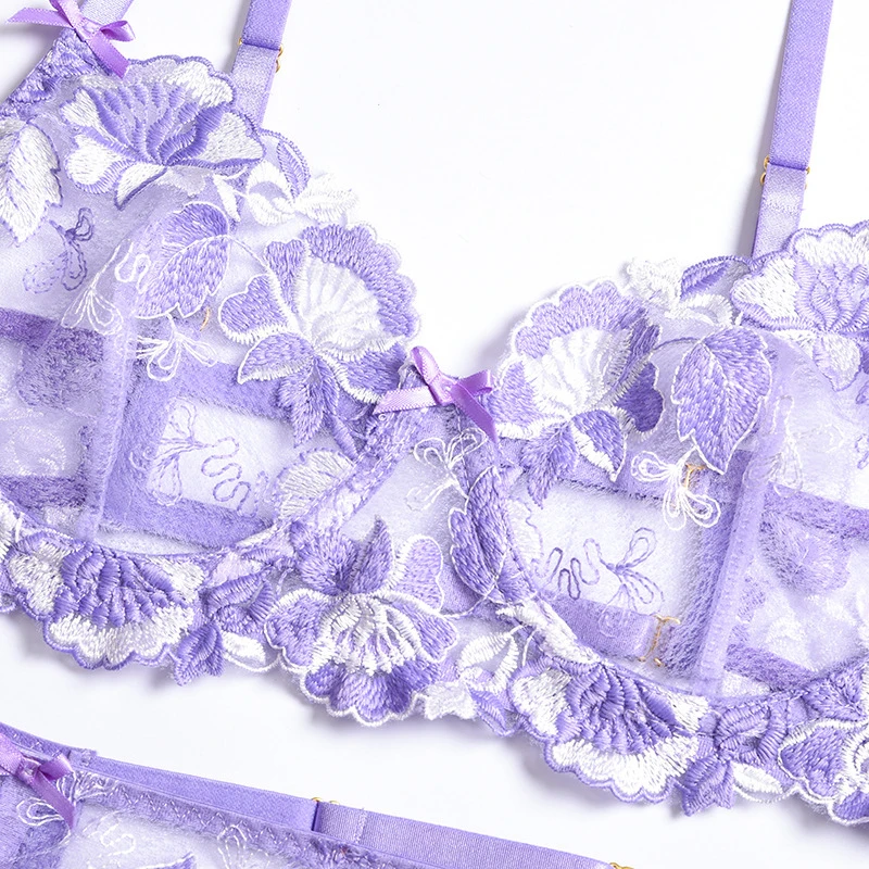 Ellolace женское нижнее белье с цветочной вышивкой, комплект женского нижнего белья, модный Кружевной Комплект бюстгальтеров, пуш-ап, стринги с подвязками, сексуальные эротические короткие комплекты