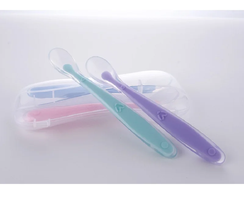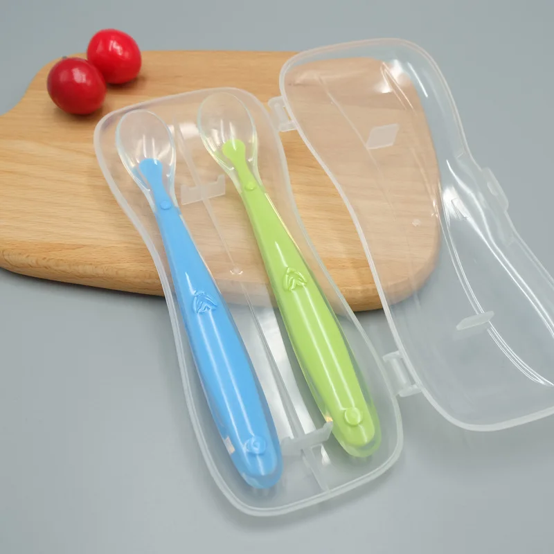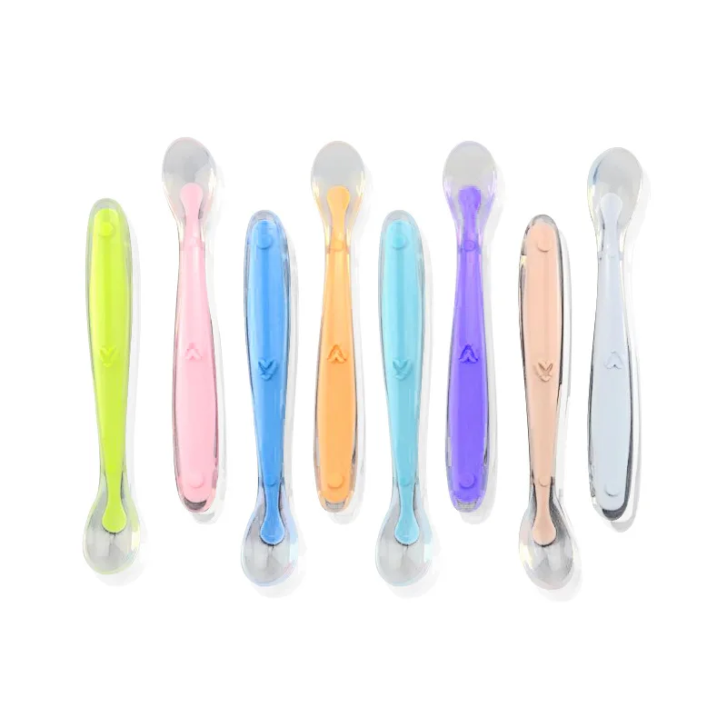 Новинка 2021, детская мягкая силиконовая ложка, ложка с датчиком температуры карамельного цвета, детские инструменты для кормления ребенка, детская ложка