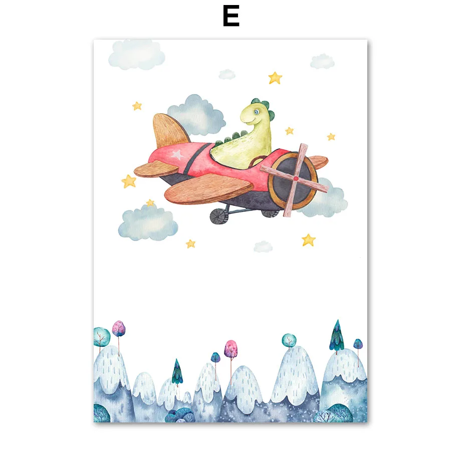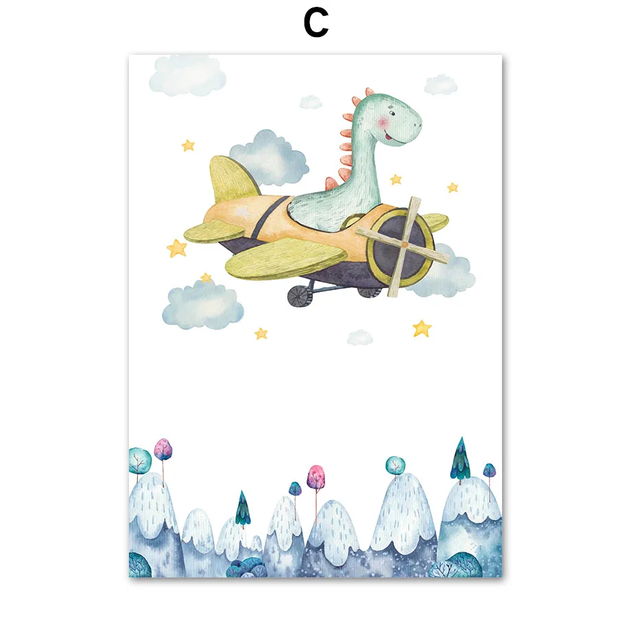Самолёт динозавр Гора на заказ настенная живопись на холсте скандинавские плакаты и принты настенные картины декор для детской комнаты для мальчика