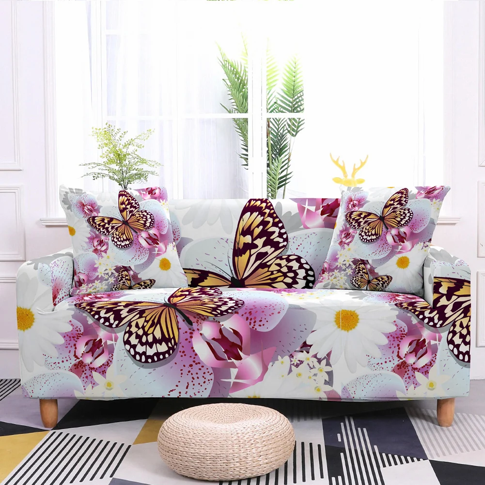 Красивый эластичный чехол для дивана с бабочками и цветами для гостиной, секционный чехол для дивана, эластичный чехол для дивана, украшение для дома