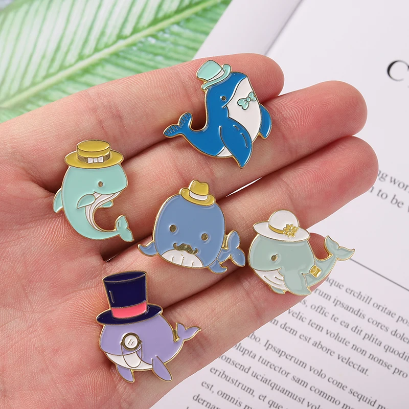 Эмалированные булавки в виде морских животных, Акула, Кит, дельфин с шляпой, Фотосумка, шляпа, лацкан, булавка, Значки для мужчин, женщин, мужчин, ювелирные изделия, подарок для ребенка