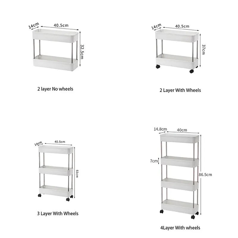 1. Изготовлен из высококачественного полипропилена, который обеспечивает вам более длительный срок службы.2. Многофункциональная тонкая корзина для хранения: тележка для подвижного хранения предназначена для экономии пространства и легкой транспортировки.3. Легко собрать: тележка для хранения в ванной очень легко установить без каких-либо дополнительных инструментов.4. Тормозные универсальные колеса: 4 легко скользящие прочные колеса с вращением на 360 ° (2 уровня не имеют колес), позволяет корзине для хранения скользить в любом месте, чтобы использовать удобно.