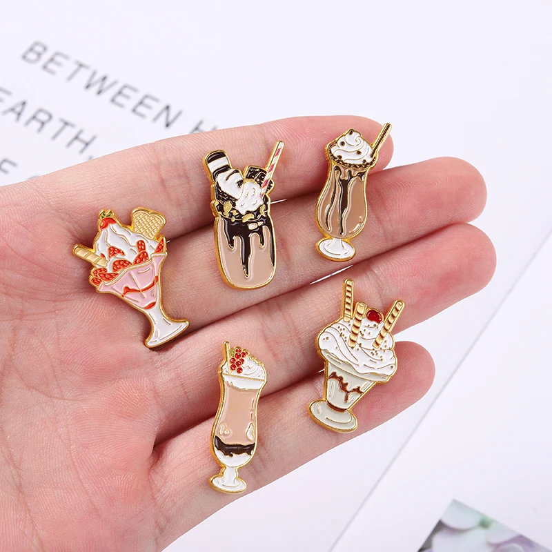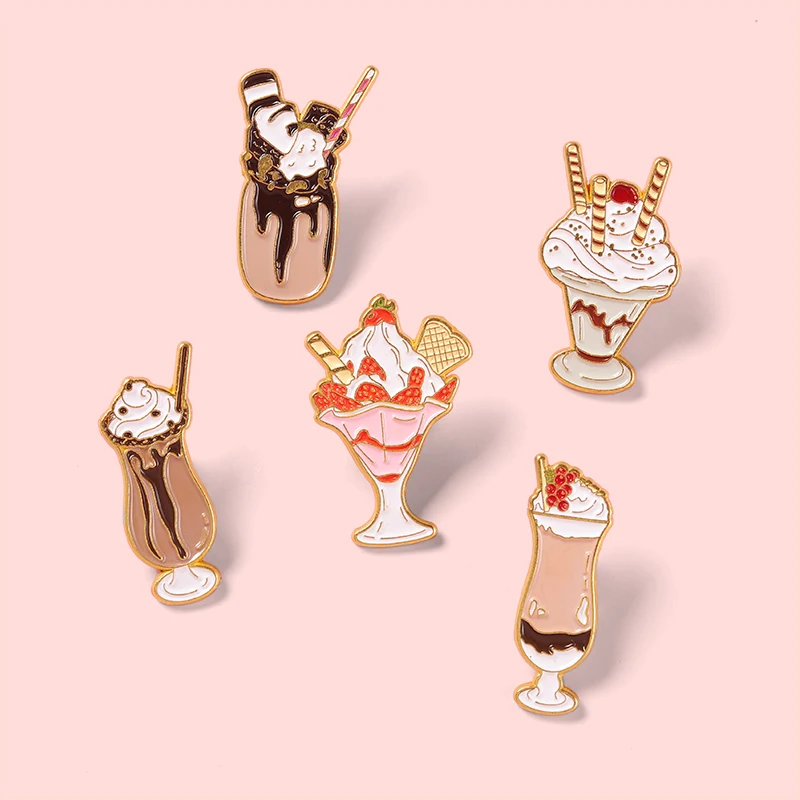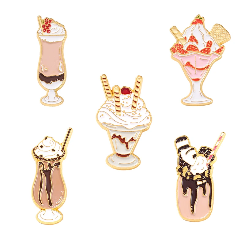 Эмалированная брошь в виде клубники, мороженого, шоколадного мороженого