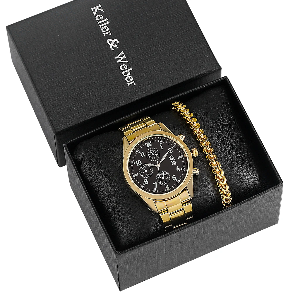Роскошные золотые часы, мужской золотой браслет, подарочный набор, ...