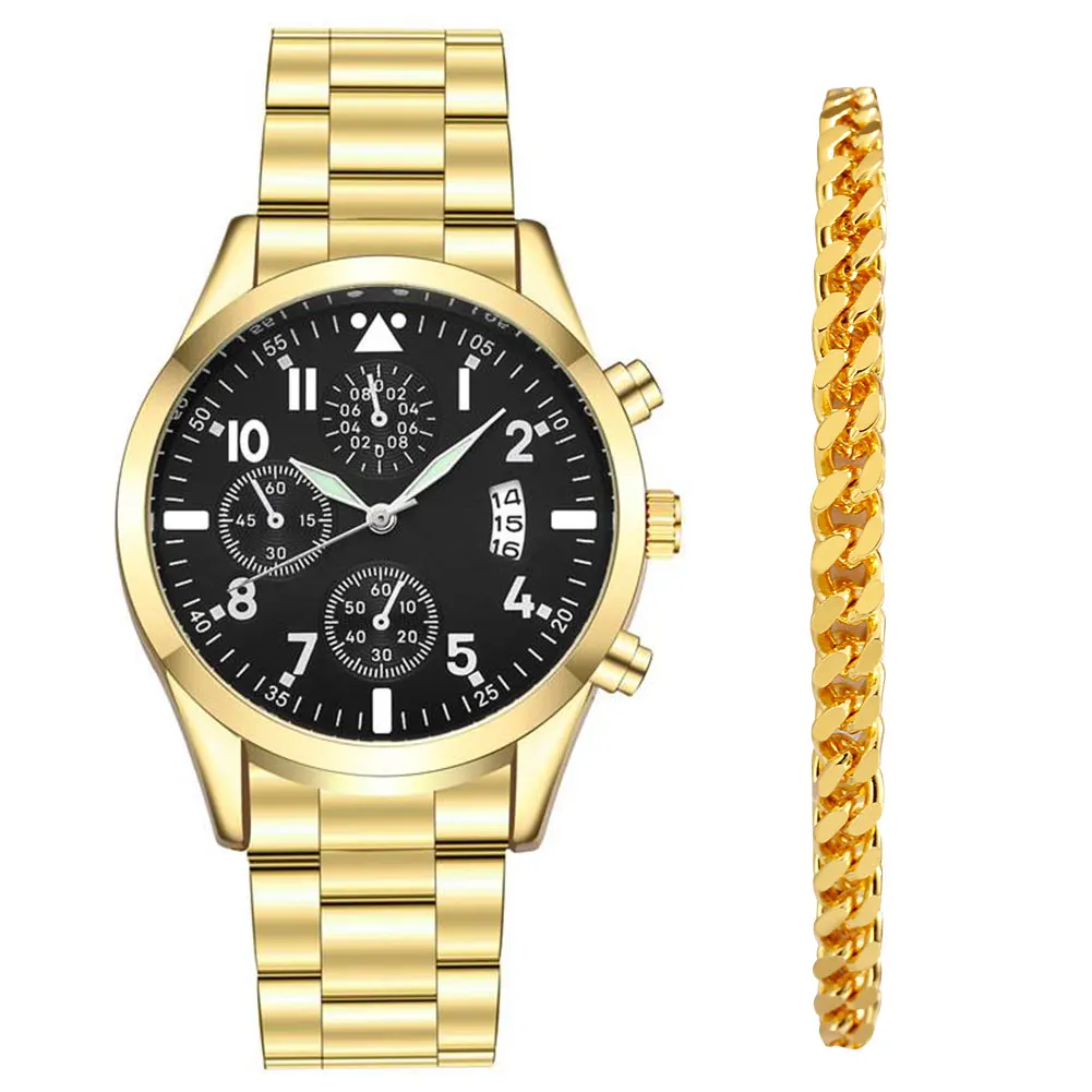 Мужские часы, подарочный набор, золотые Роскошные Кварцевые часы, винтажные браслеты из нержавеющей стали, верхние наручные часы для парня, мужа, Relogio