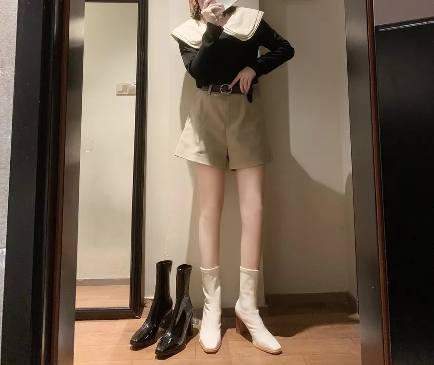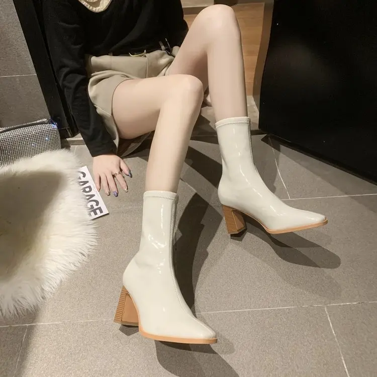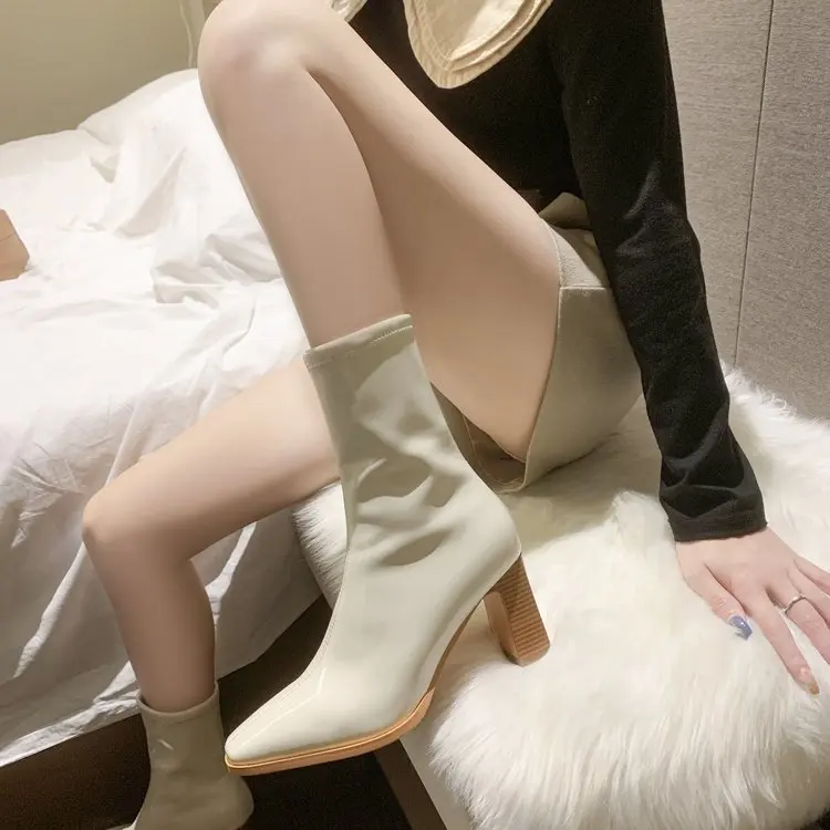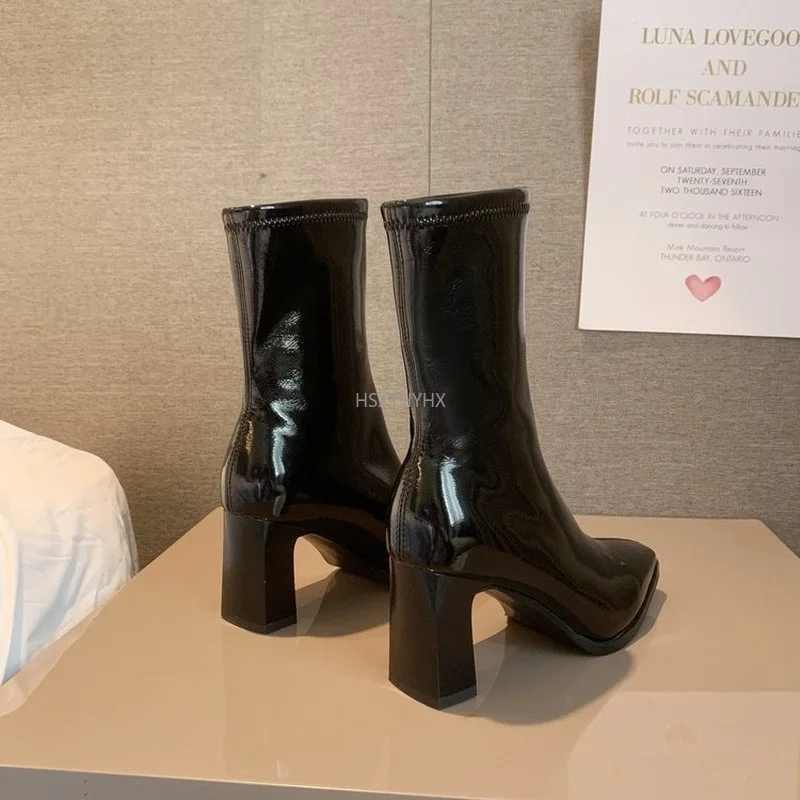Женские короткие ботинки с квадратным носком, Модные Новые однотонные ботинки из искусственной кожи на толстом каблуке, 2022